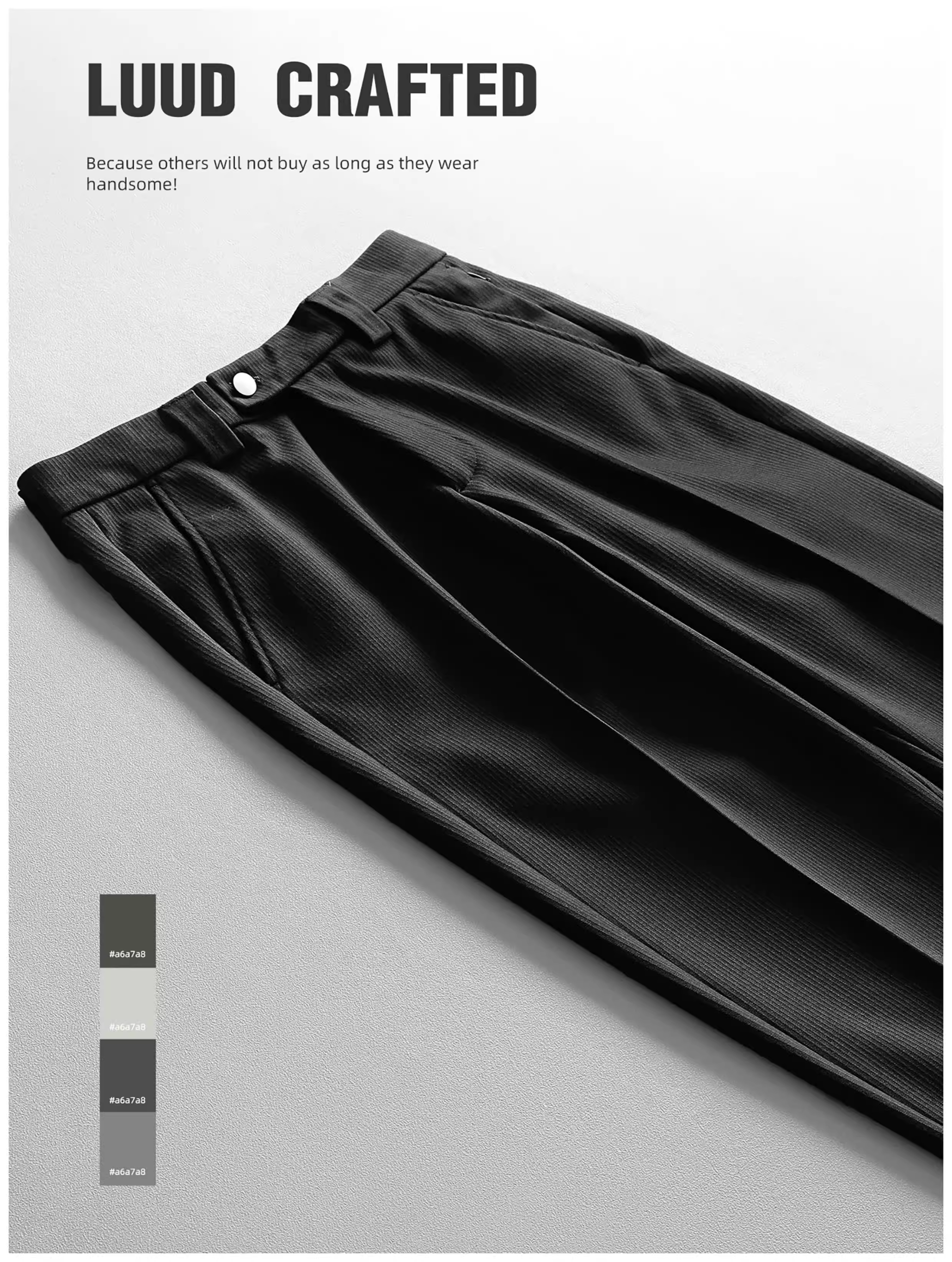 Quần len cao cấp LUUD dành cho nam, quần tây công sở dáng thẳng mùa đông, quần dài ấm áp đa năng, phong cách thường ngày
