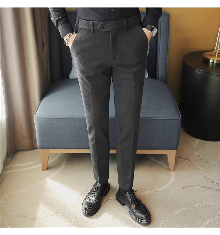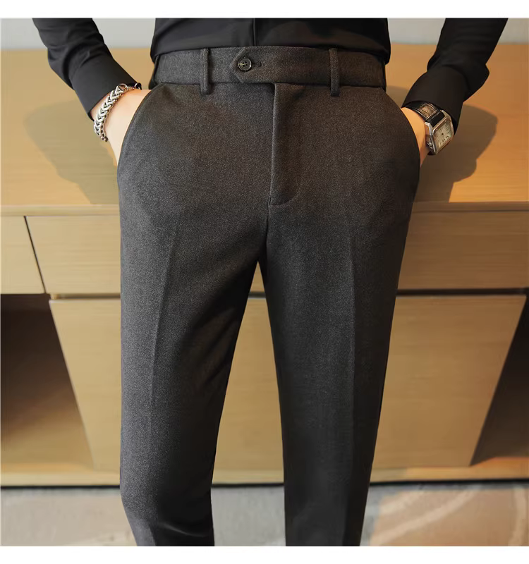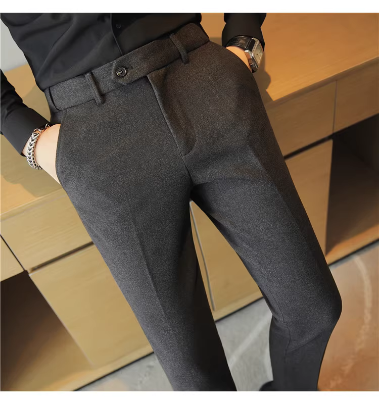 Quần len nam, dáng ôm, thu đông, chất liệu len chải dày, cao cấp, thời trang, sành điệu, quần dài thường ngày