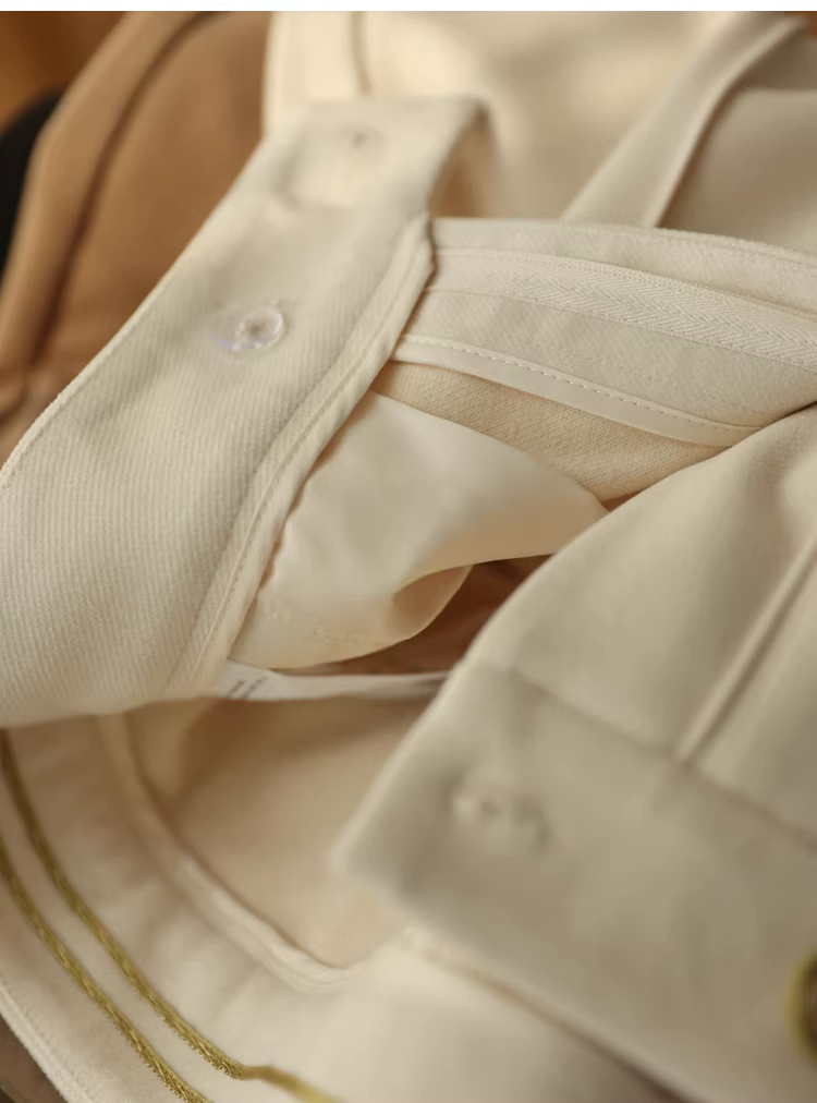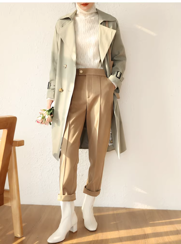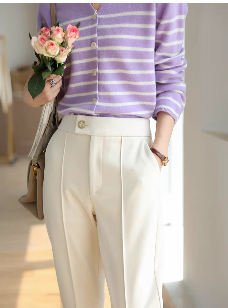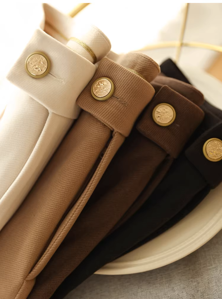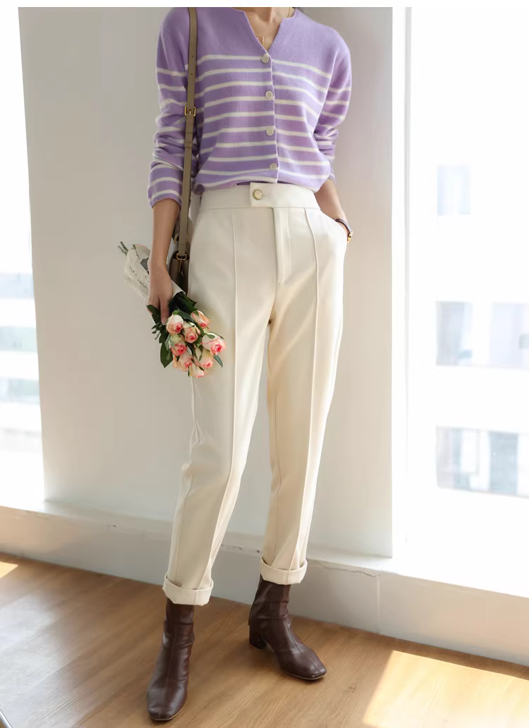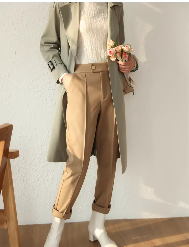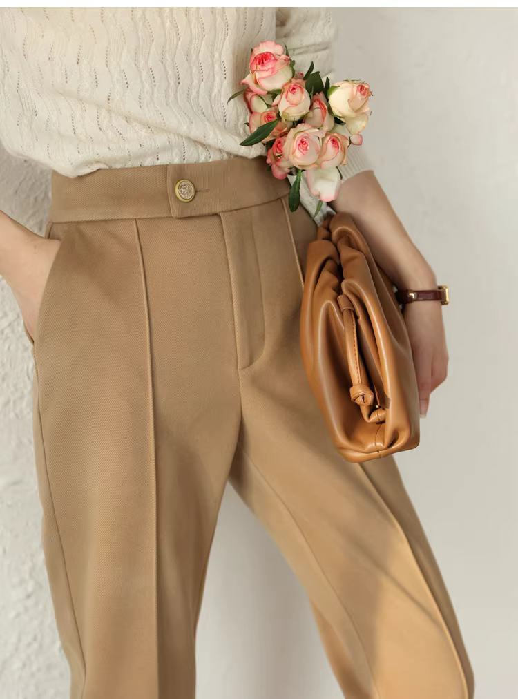- Quần lõi thu đông, phong cách đi làm, giảm béo, lót lông cừu, quần thuốc lá cạp cao có nút vàng, quần len nữ, quần dài