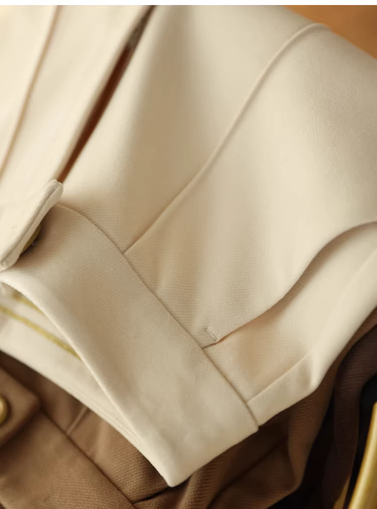 门襟一粒扣,闪亮的金属感纽扣,光泽感强,轻奢精致