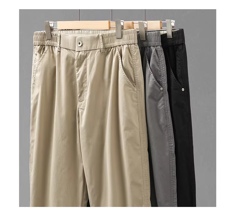 Quần lụa đá mát lạnh cho nam, kiểu mới xuân 2025, quần công sở phong cách retro Mỹ, quần suông ống đứng dáng rộng thoải mái