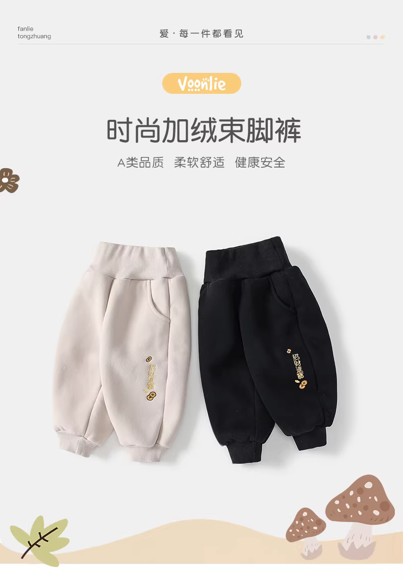 - Quần mùa đông cho bé trai, quần cotton lót lông cừu cho bé, trang phục lễ hội năm mới ấm áp giản dị, quần jogger cho mùa đông.
