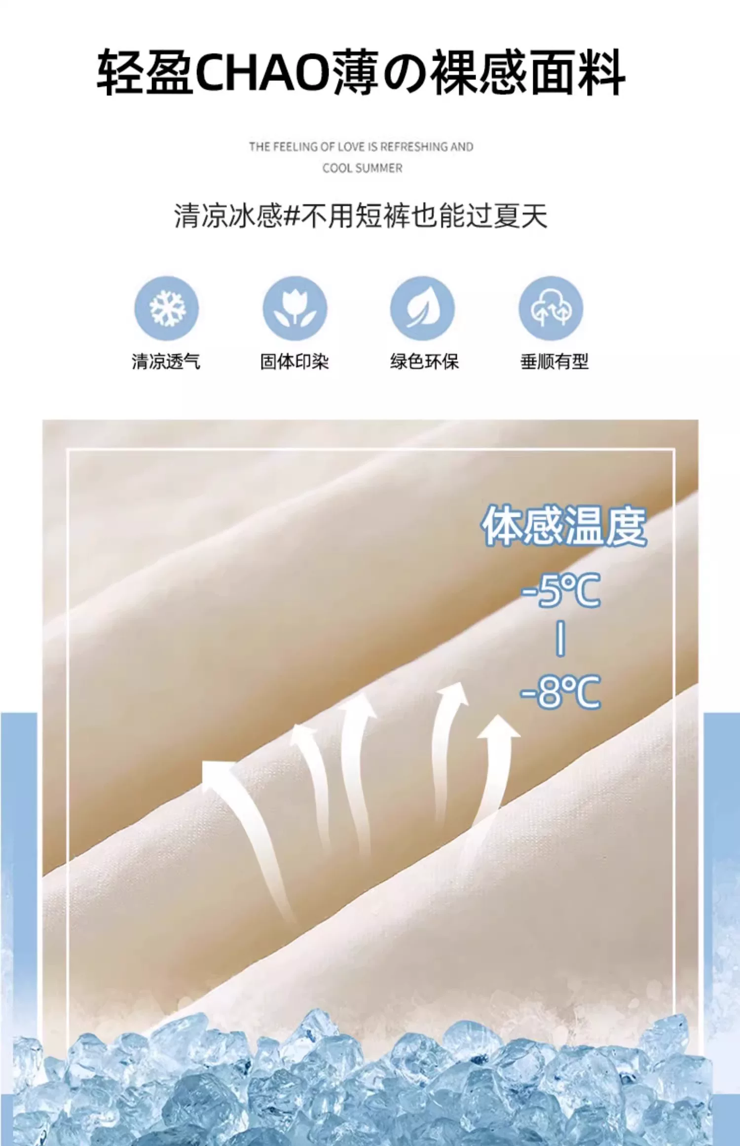 Quần Nai Fu Yamamoto nữ hè 2025, chất liệu mỏng, kiểu dáng thường ngày, size lớn, cạp cao, tôn dáng, chất liệu lụa đá, quần ống rộng