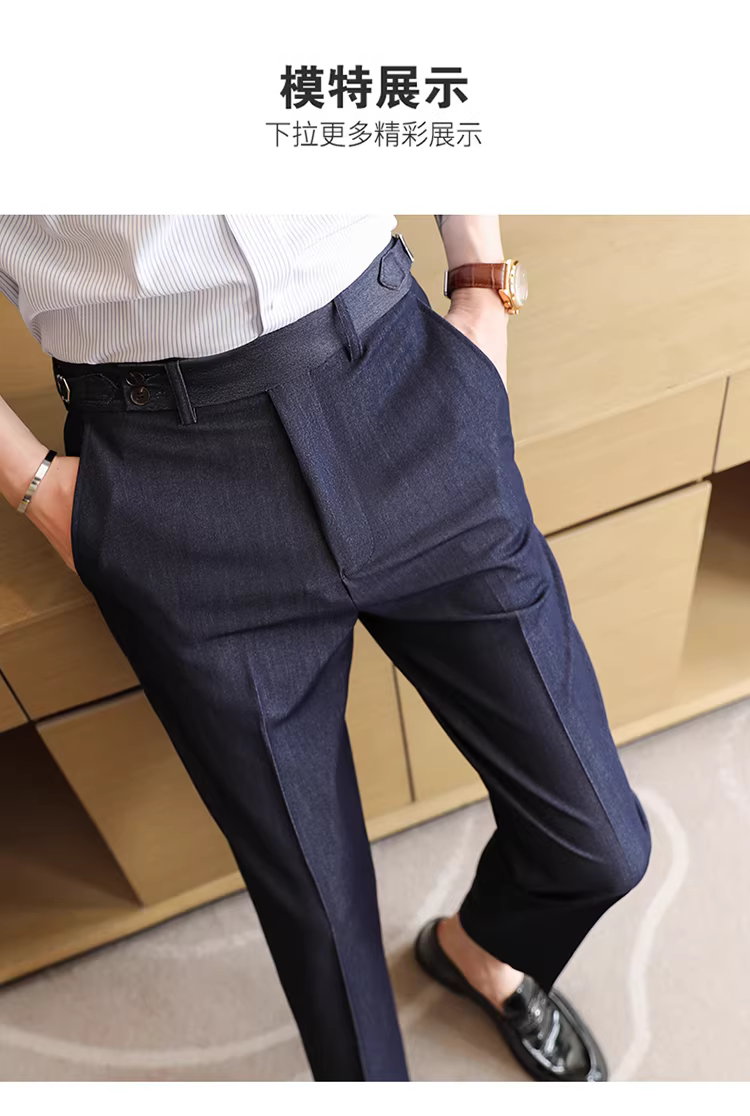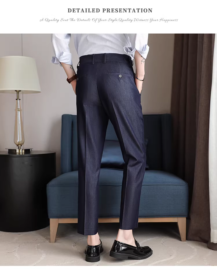 - Quần nam giả denim Naples mùa xuân hè mới, quần âu lịch sự, quần vải len Tencel