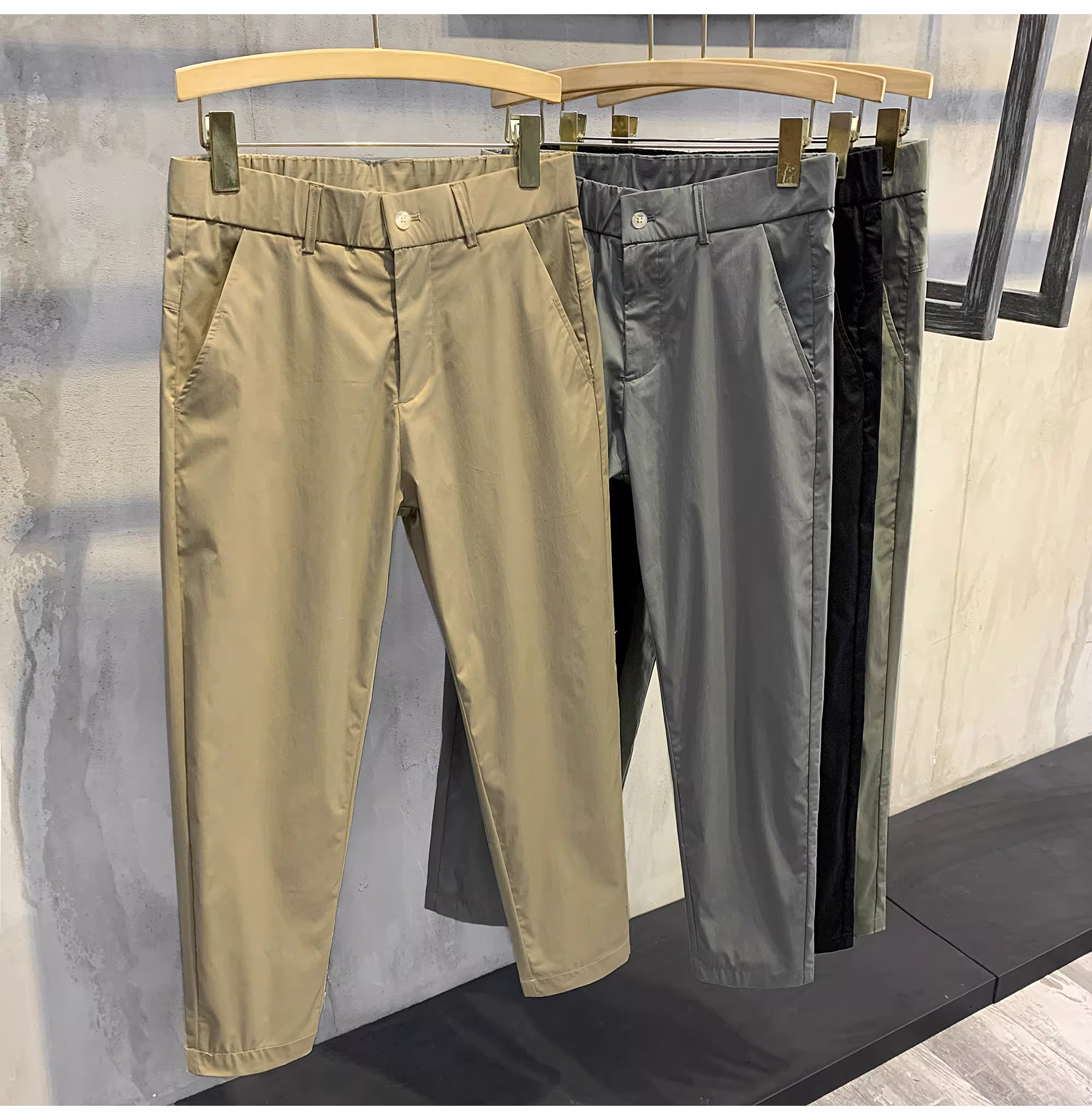 - Quần nam lụa băng mỏng, quần âu mùa hè đa năng, quần âu thời trang màu trơn kiểu dáng ôm sát hiện đại
