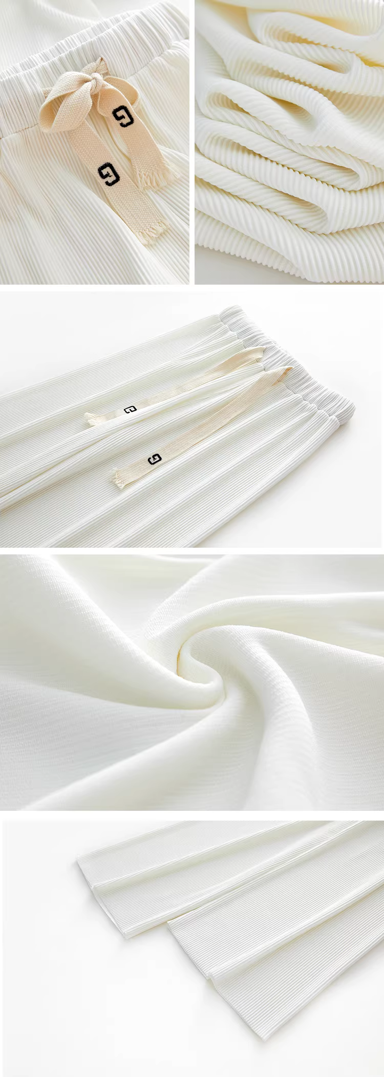 只是在基础阔腿裤上加入竖条坑条纹理
