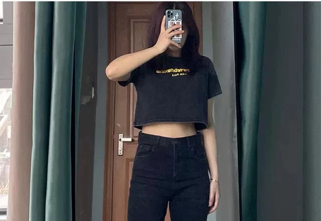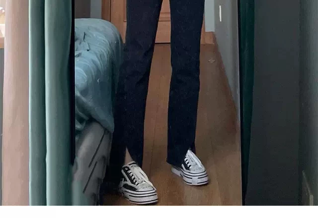 - Quần ống đứng co giãn hình quả lê mùa thu đông 2022 cạp cao giảm béo cỡ lớn quần jean ống loe béo mm