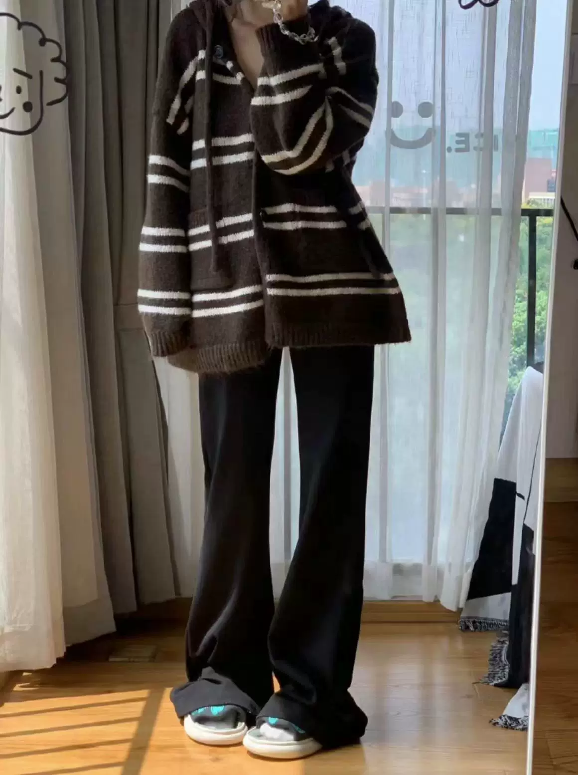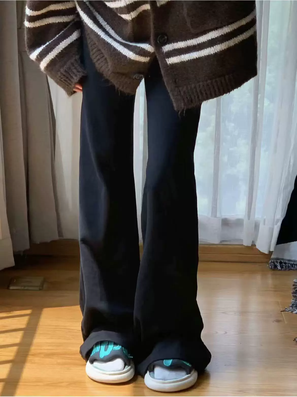 - Quần ống loe dành cho nữ, cỡ lớn, mùa thu đông, lót lông cừu, lưng cao, dáng rộng, che hông, giảm béo, quần thể thao thông thường