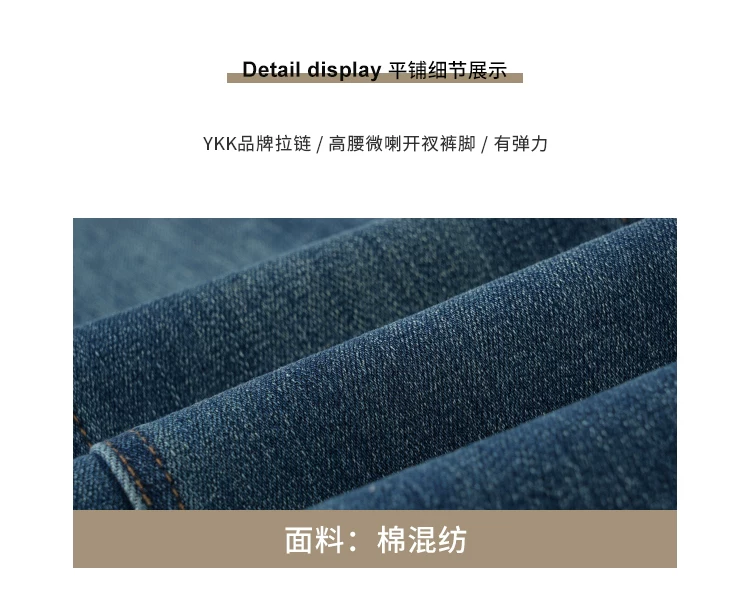 Quần ống loe dành cho nữ, kiểu dáng thu đông mới, cỡ lớn, lót lông cừu, dày dặn, cạp cao, che hông, co giãn, tôn dáng, quần denim ống loe.
