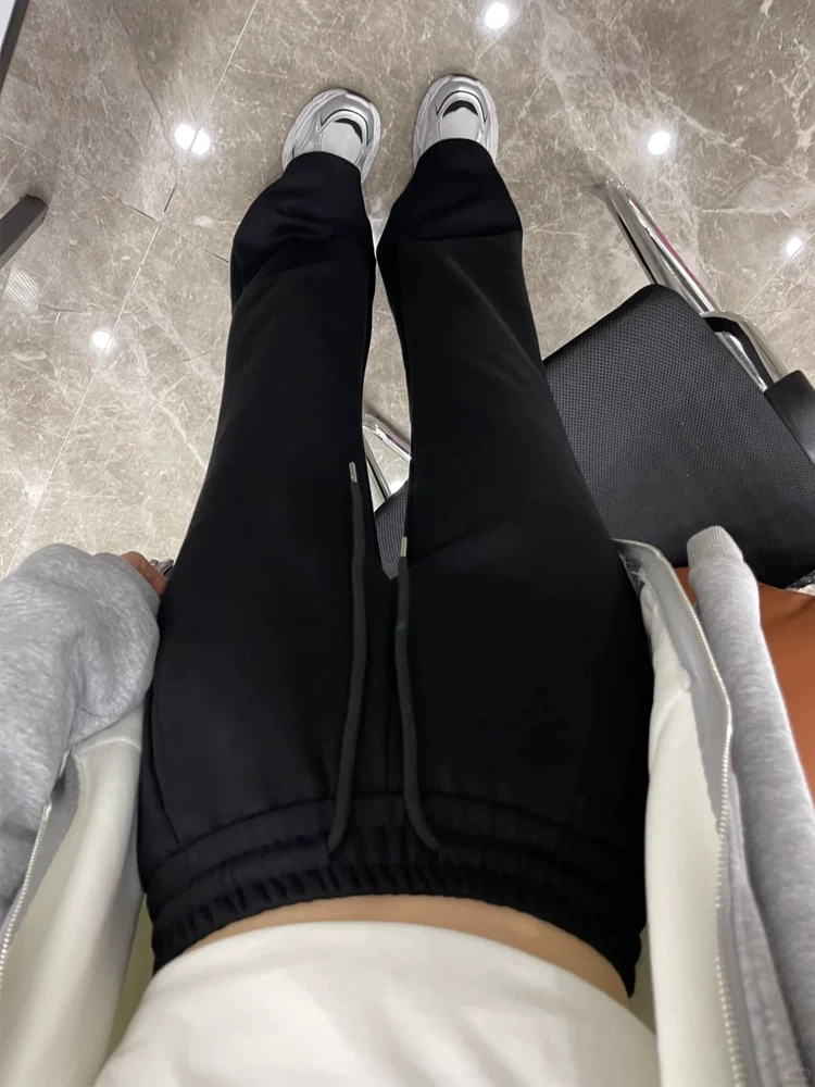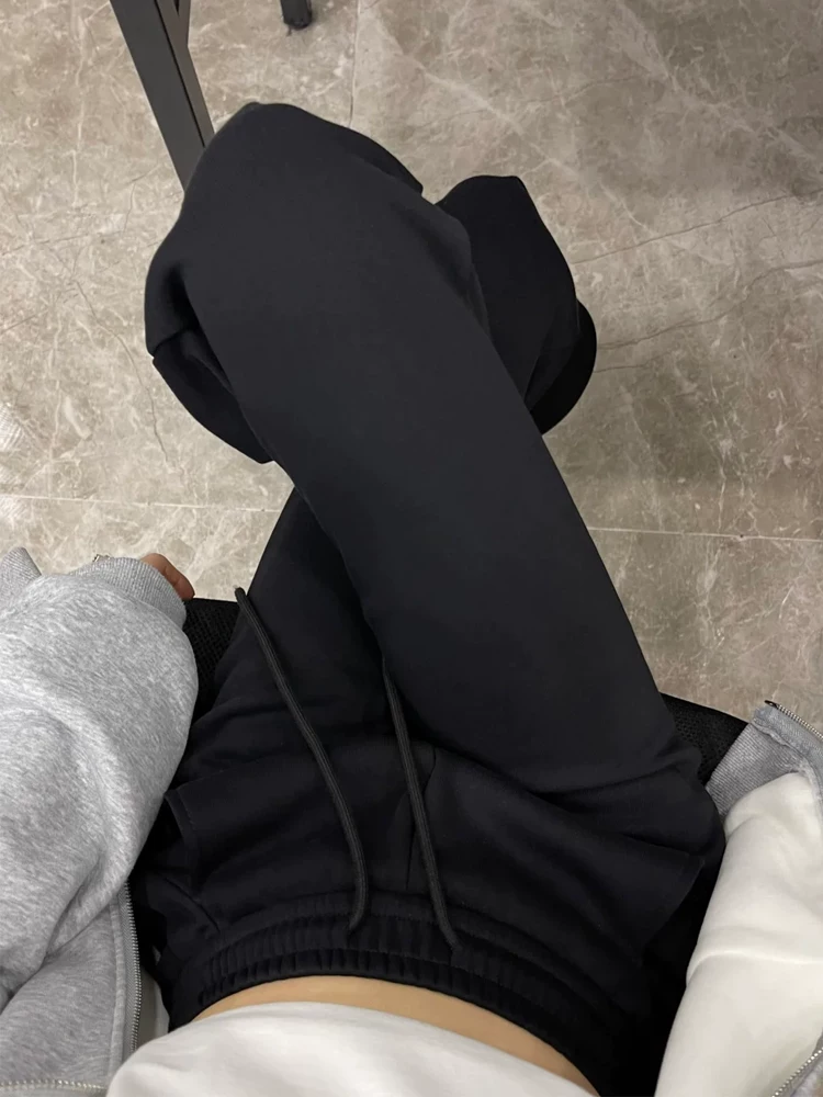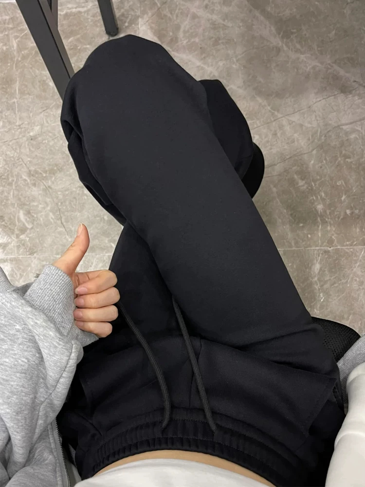 Quần ống loe dày lót lông cừu màu đen dành cho nữ, mùa thu đông, cỡ lớn, lưng cao, mềm mại, che hông, giảm béo, quần thể thao thông thường.