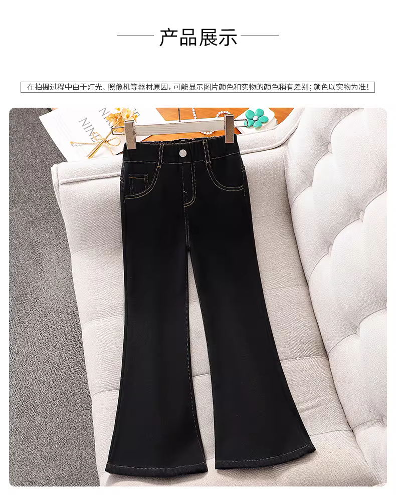 - Quần ống loe lót lông mùa đông cho bé gái 2025, quần jean đen ôm dáng trẻ em mới mùa thu đông, quần ôm dáng cho bé gái
