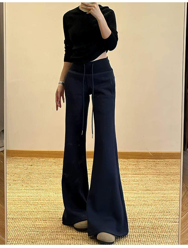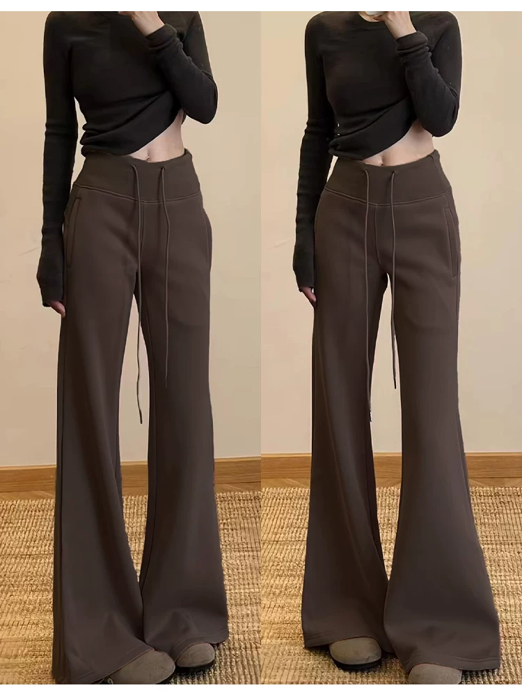 - Quần ống loe lưng cao màu cà phê Melard lulu dành cho nữ, mùa thu đông, cỡ lớn, dáng suôn, quần ống loe