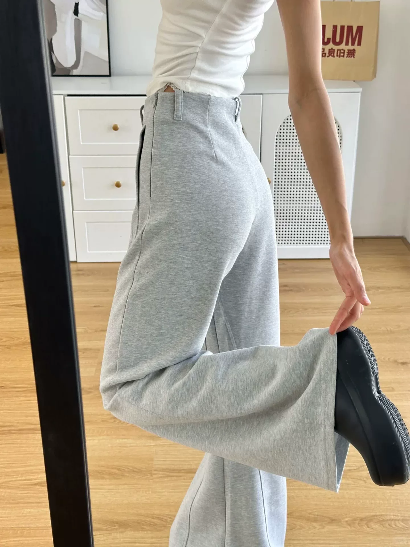 Quần ống loe màu xám lười biếng dành cho nữ, mùa thu đông, cỡ lớn, lưng cao, giảm béo, dáng suôn, dáng quả lê, quần thể thao ống rộng