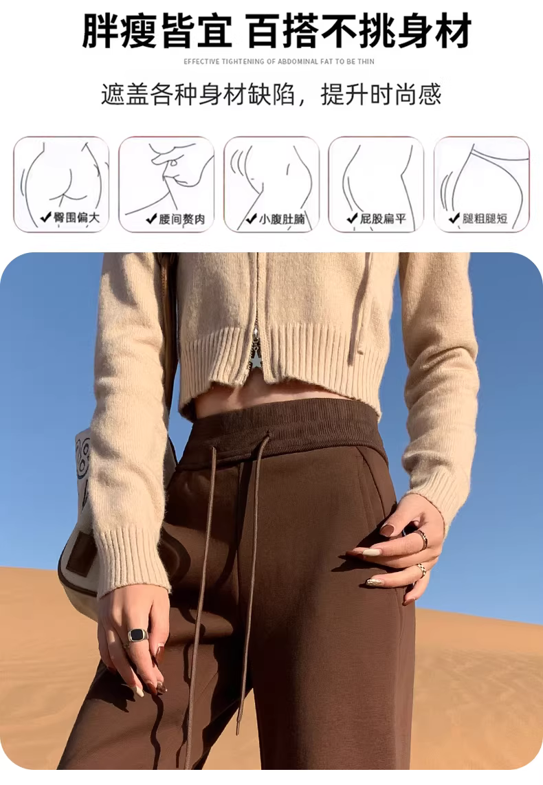 - Quần ống loe nhỏ nhắn màu cà phê La Chapelle dành cho nữ, quần ống chuông cạp cao ôm dáng lót lông cừu mới mùa thu đông 2025.