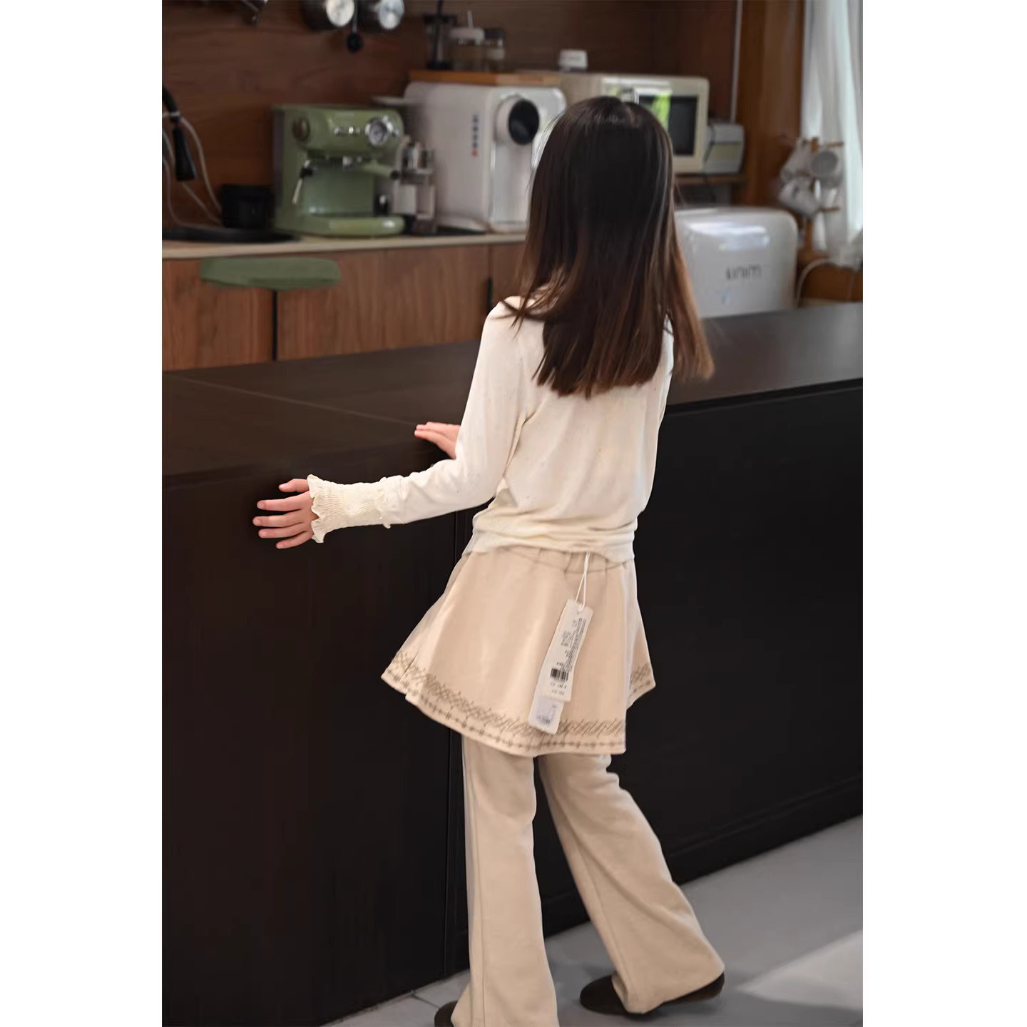 - Quần ống loe thường ngày cho bé gái, quần thể thao, quần thể thao, quần áo trẻ em, mùa thu, viền loe, giảm béo, sành điệu, ống thẳng, đa năng, hợp thời trang
