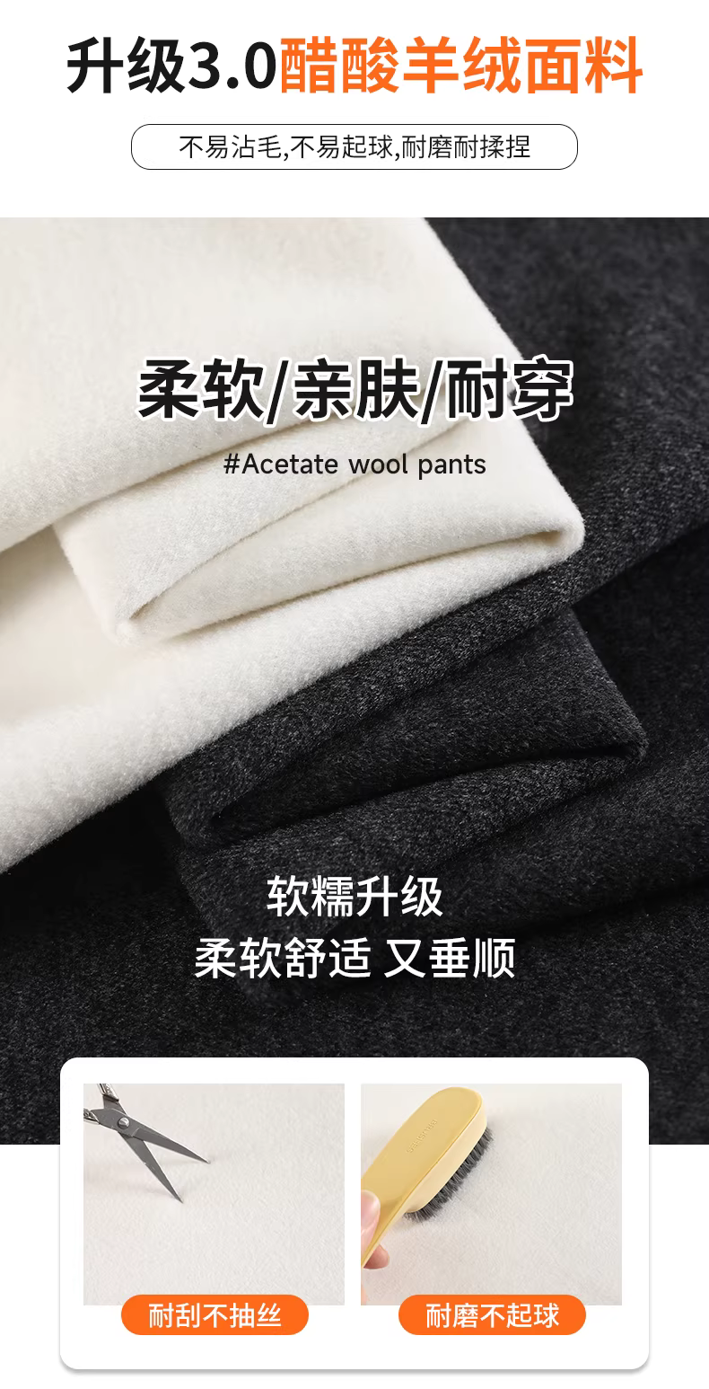 - Quần ống rộng bằng cashmere màu trắng nhạt dành cho nữ, quần lót lông cừu mùa thu đông dành cho phụ nữ cao, quần đi bộ dài chạm sàn, quần gạo nếp.