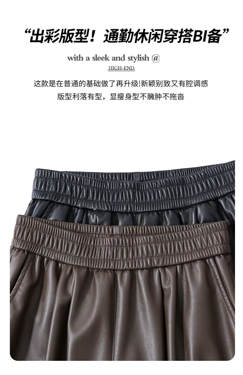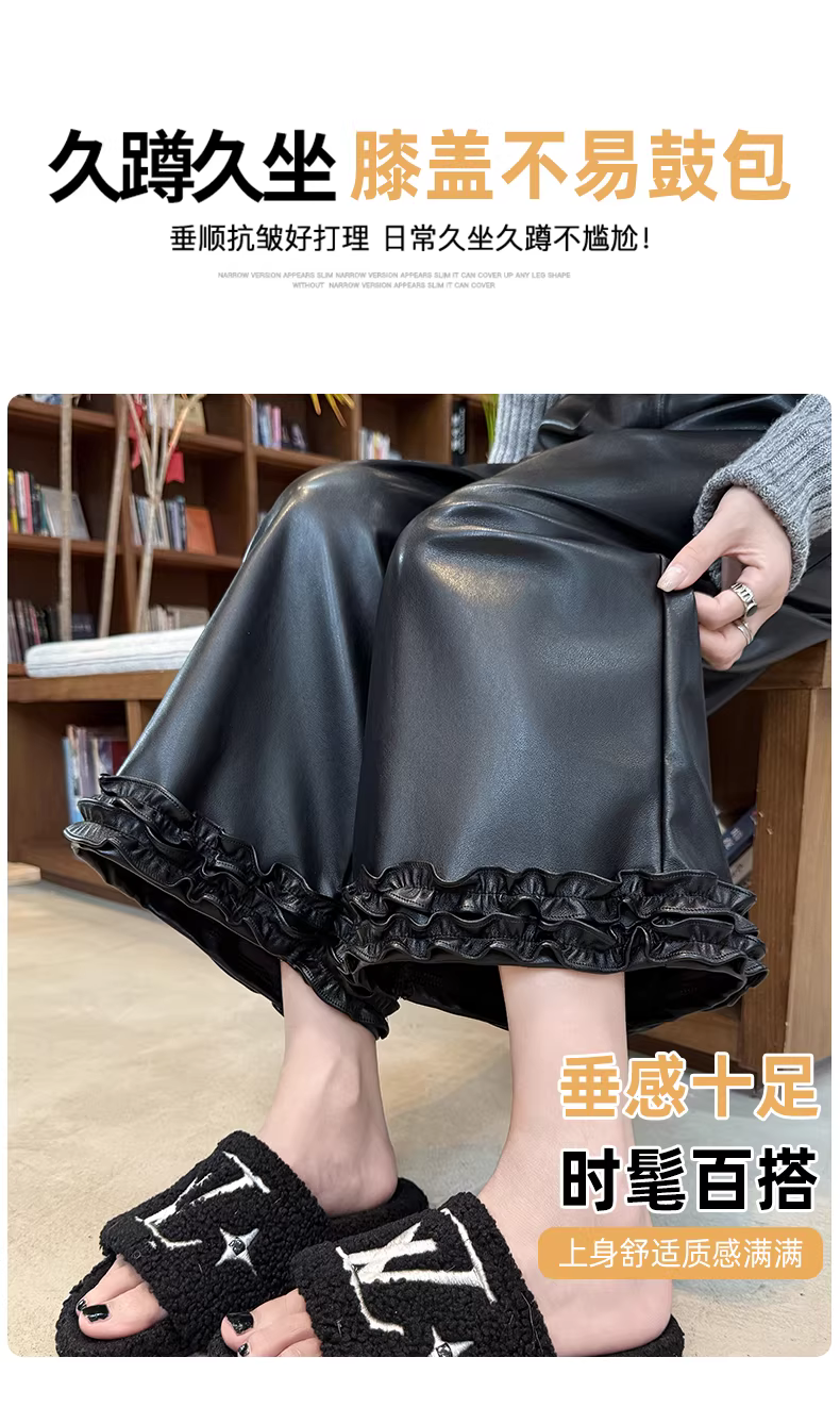 - Quần ống rộng bằng da màu nâu dành cho nữ, quần lửng mùa thu đông vừa vặn cực đẹp, quần ống đứng ôm sát bằng da PU.