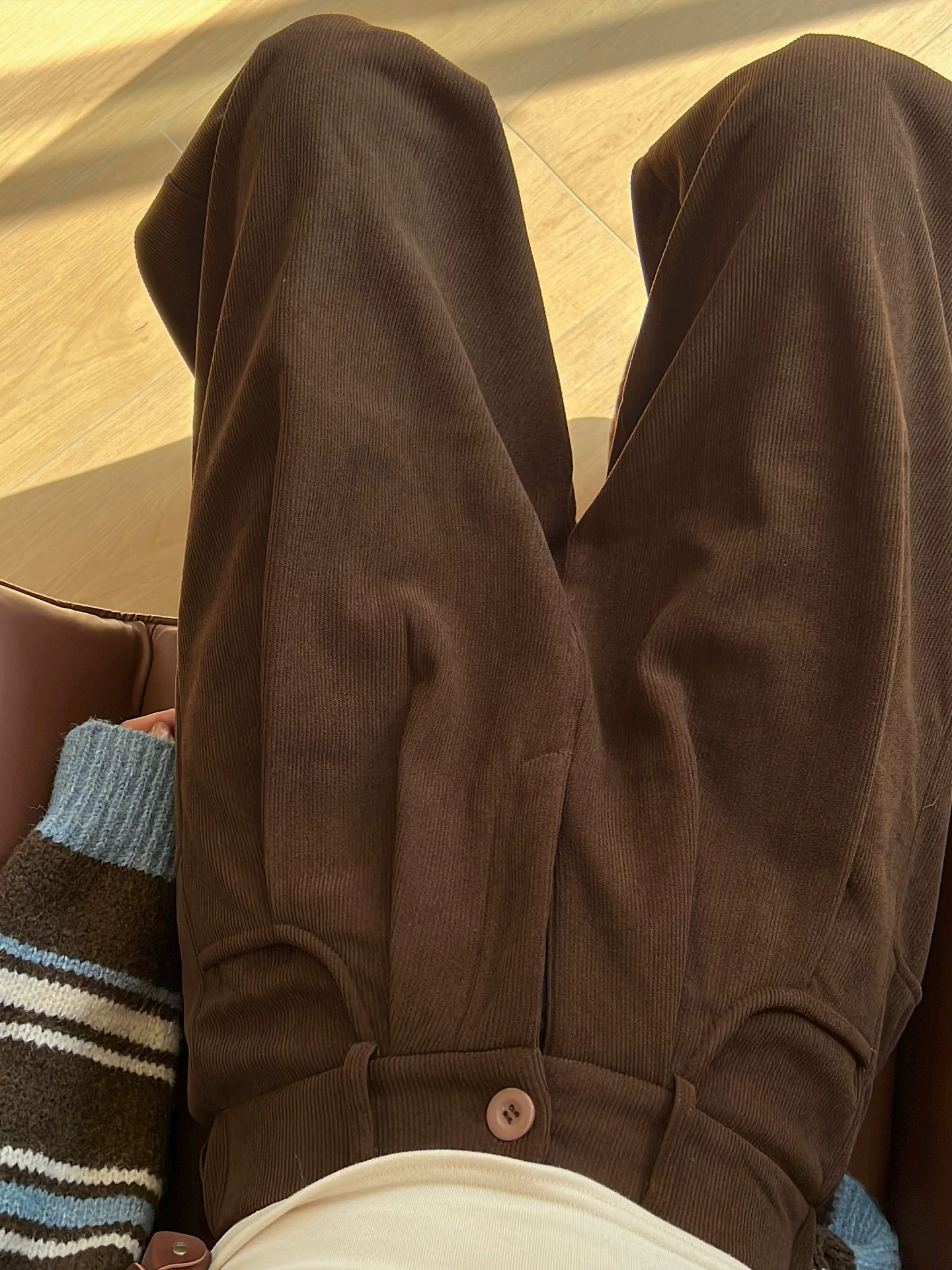- Quần ống rộng bằng vải nhung màu cà phê Melard dành cho nữ, lót lông cừu mùa đông, dày dặn, cỡ lớn, lưng cao, dáng rộng, giảm béo, quần thường ngày.