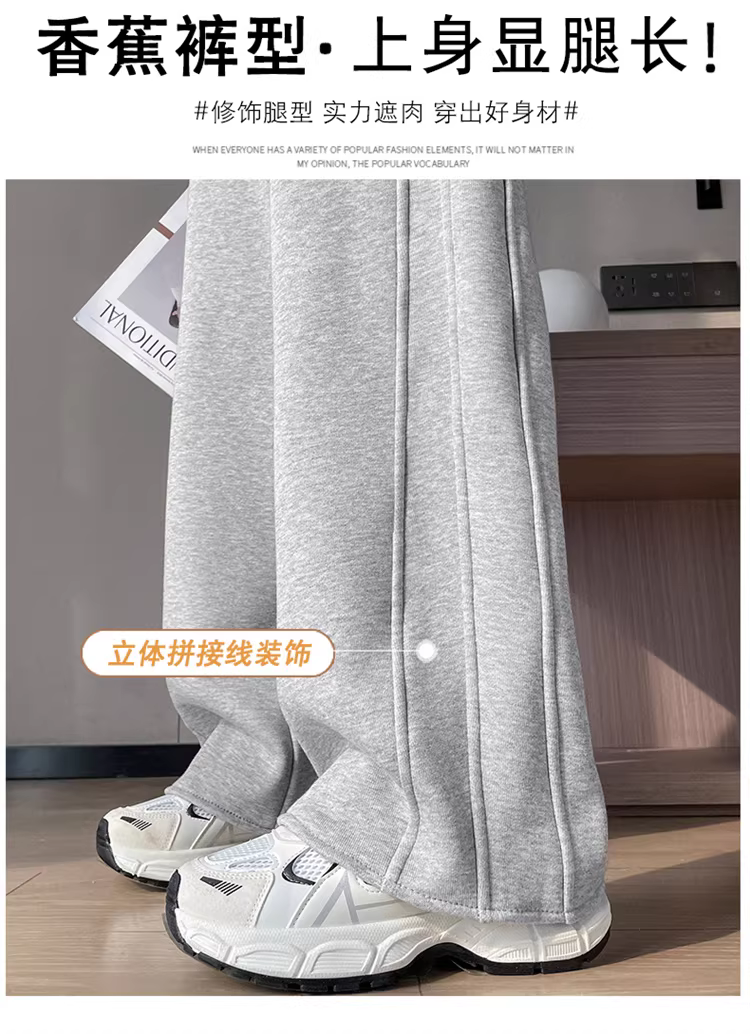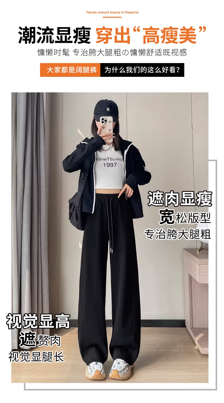 - Quần ống rộng cạp cao dáng ôm chất liệu lông cừu, quần thể thao nữ, quần jogger nữ