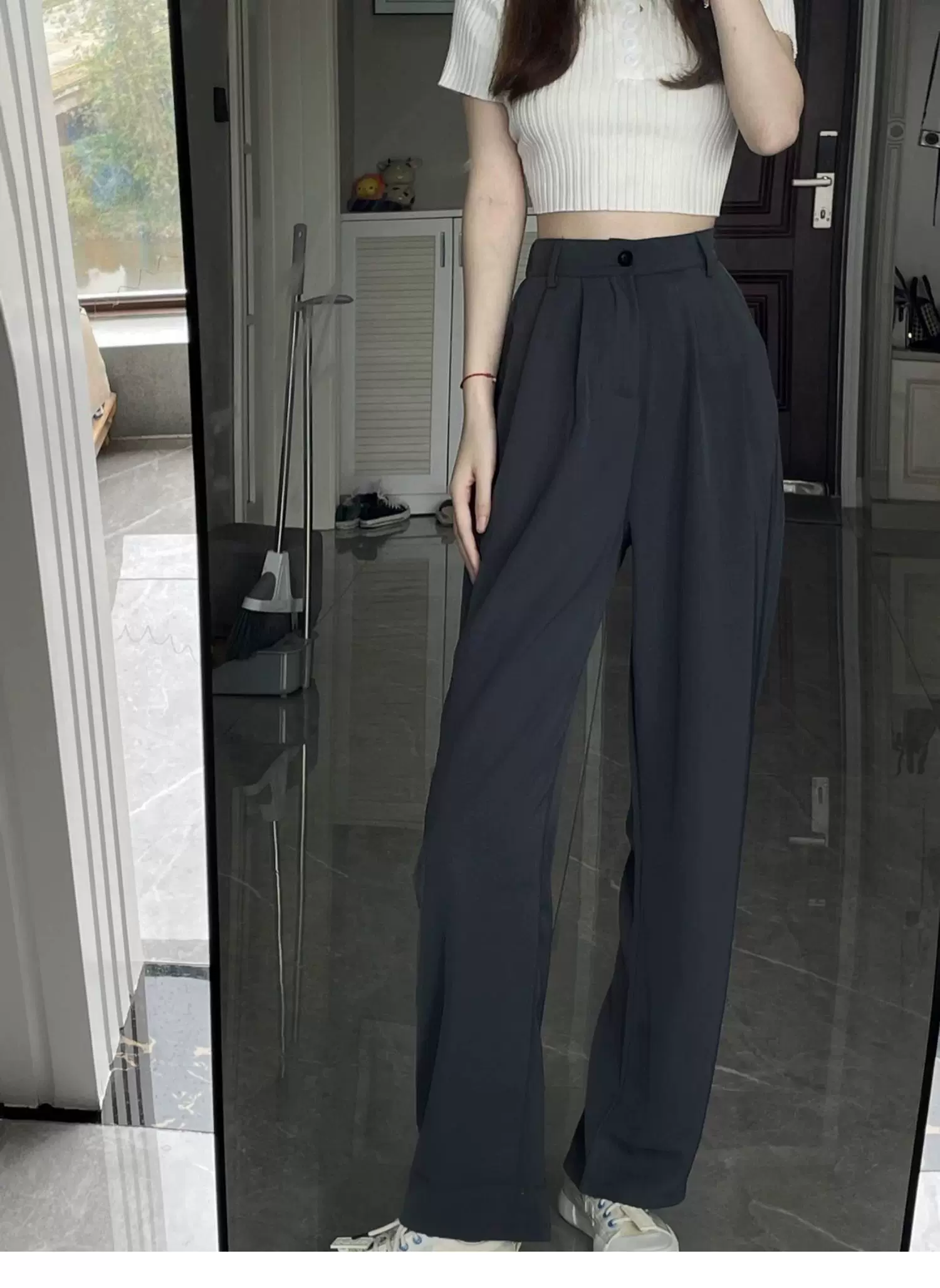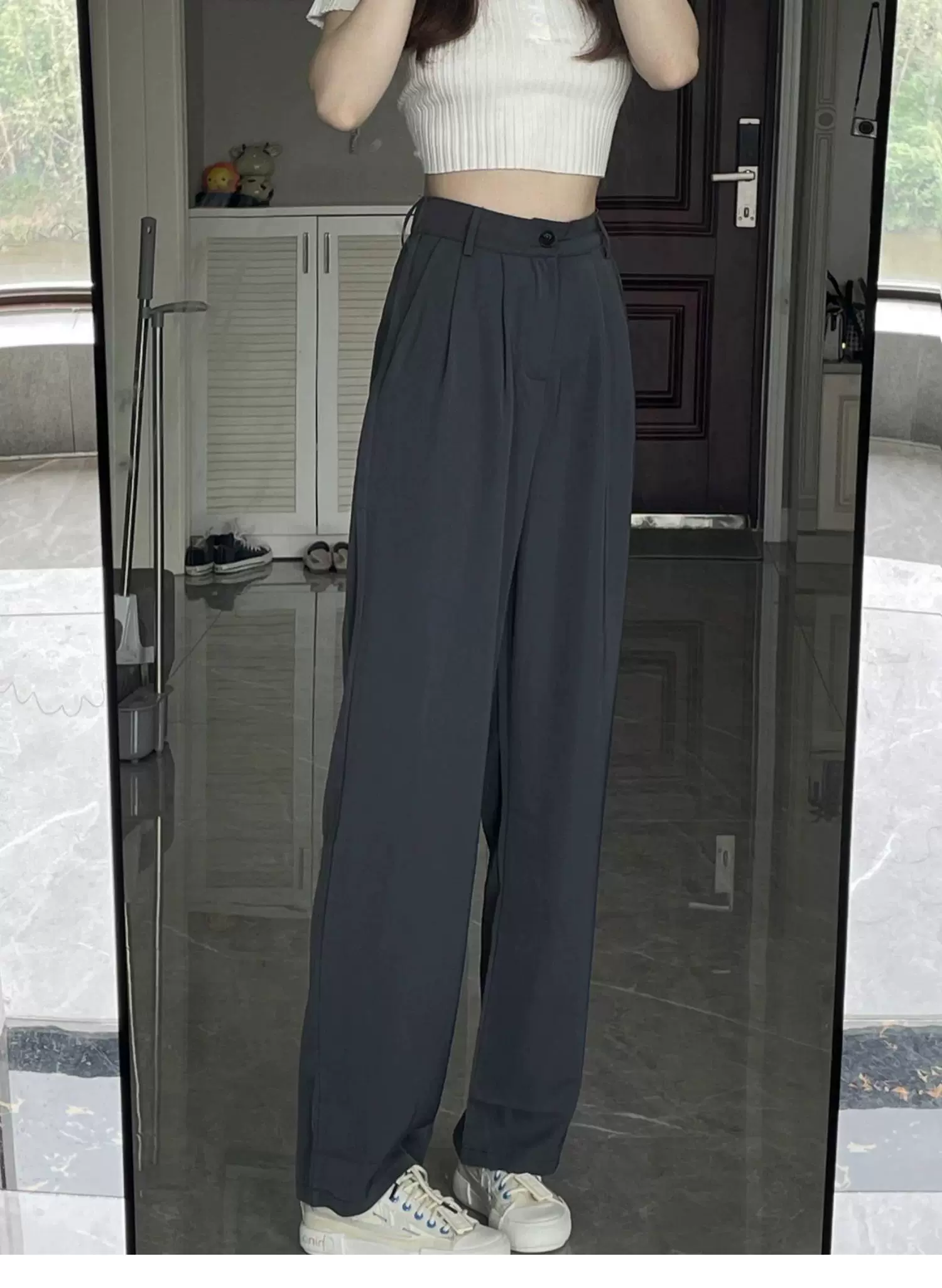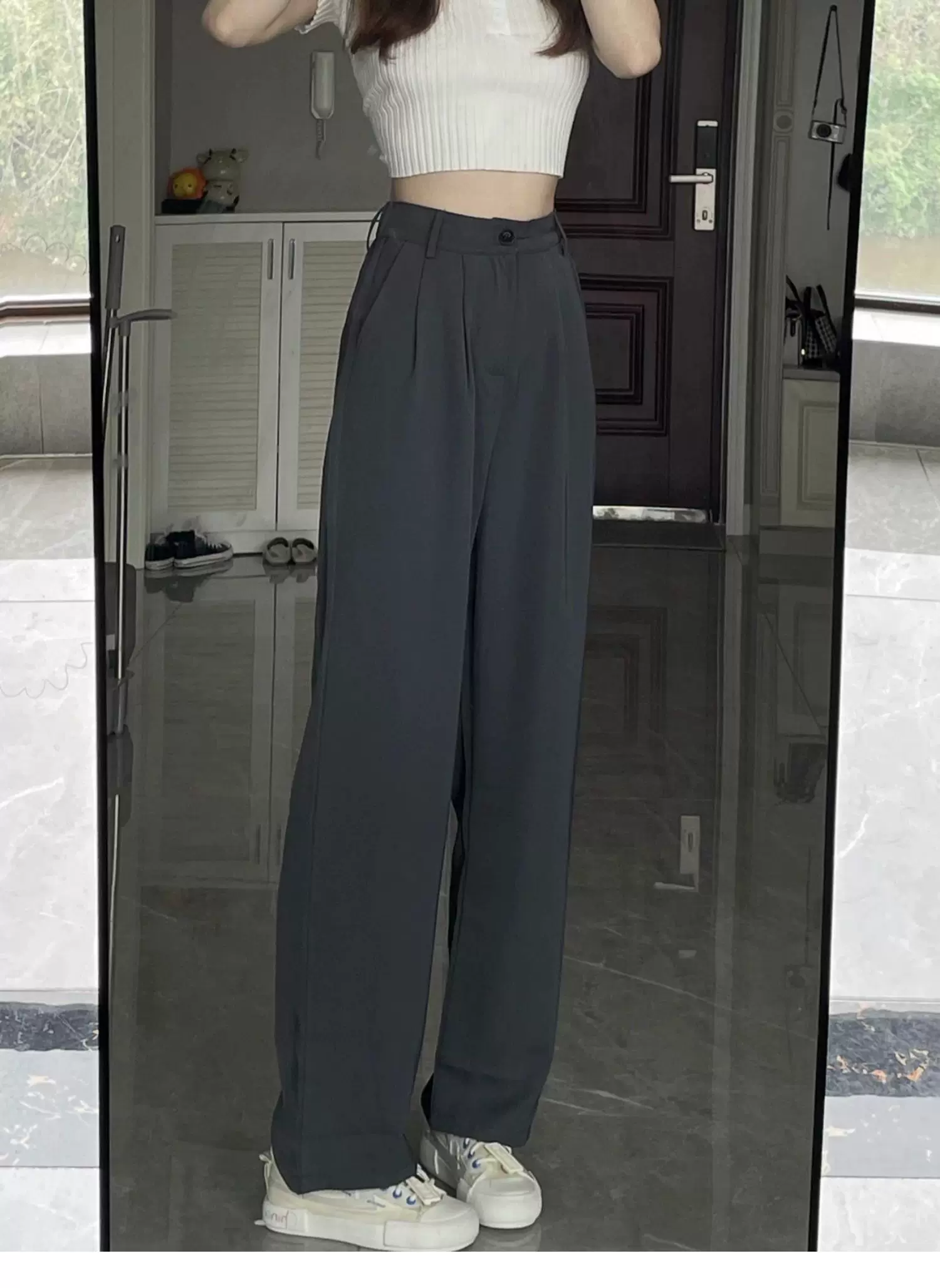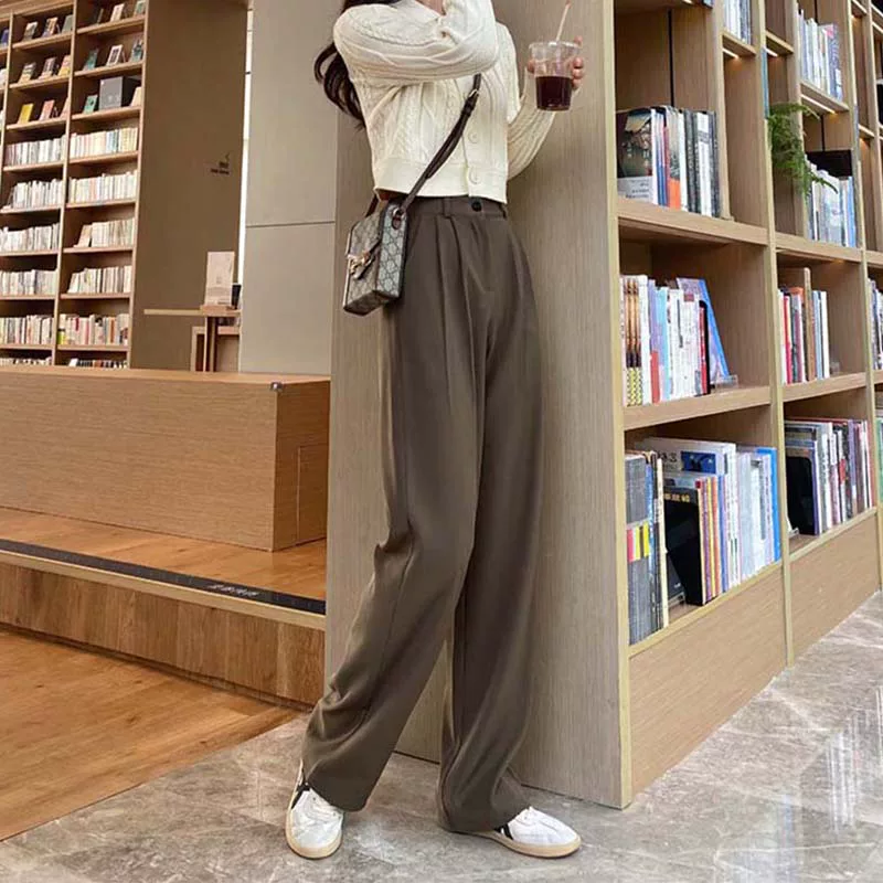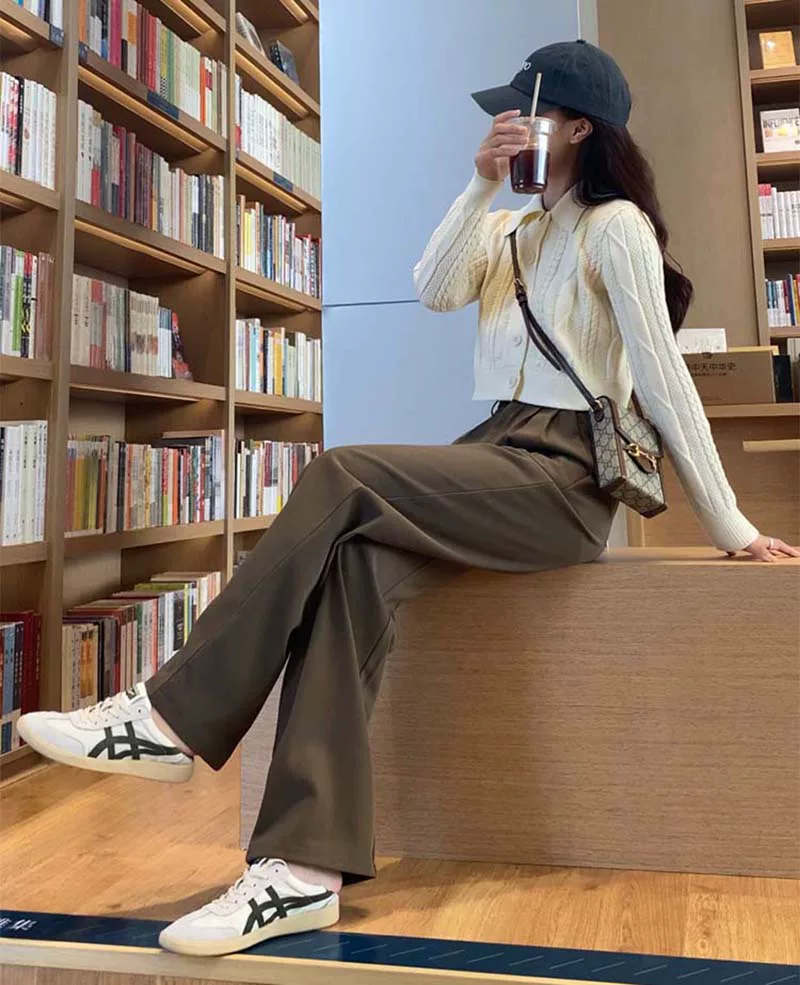 - Quần ống rộng dáng quả lê dành cho nữ, phong cách đầu thu, dáng hơi mũm mĩm, cảm giác cao cấp, mềm mại, lưng cao, quần kiểu dáng thon gọn