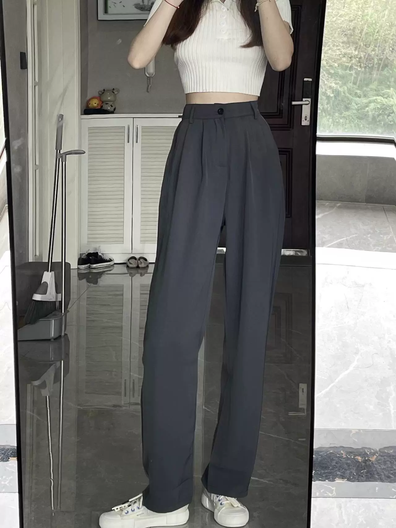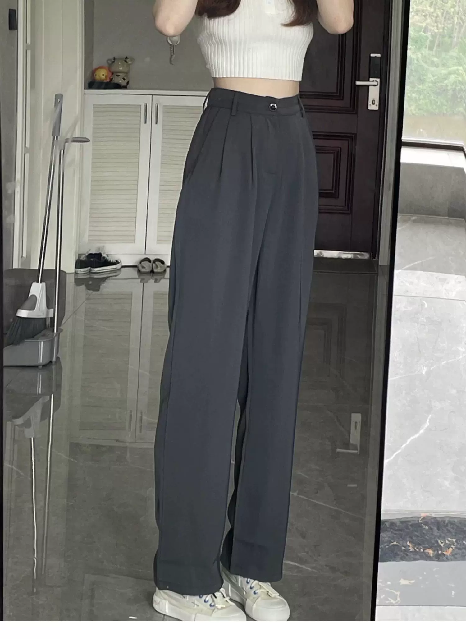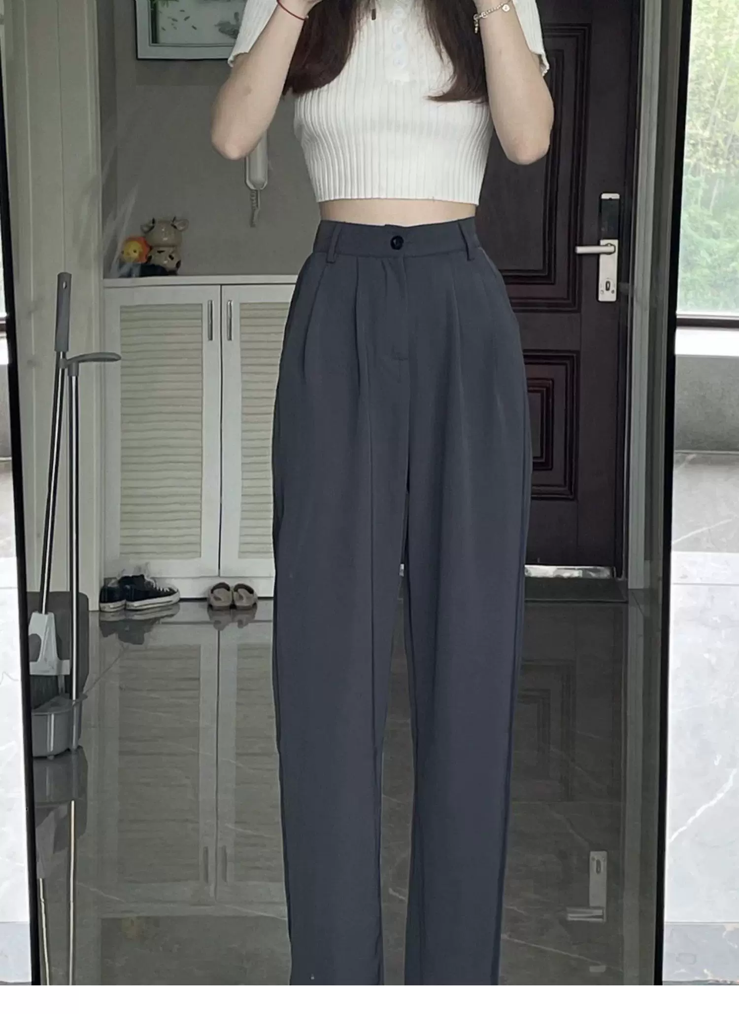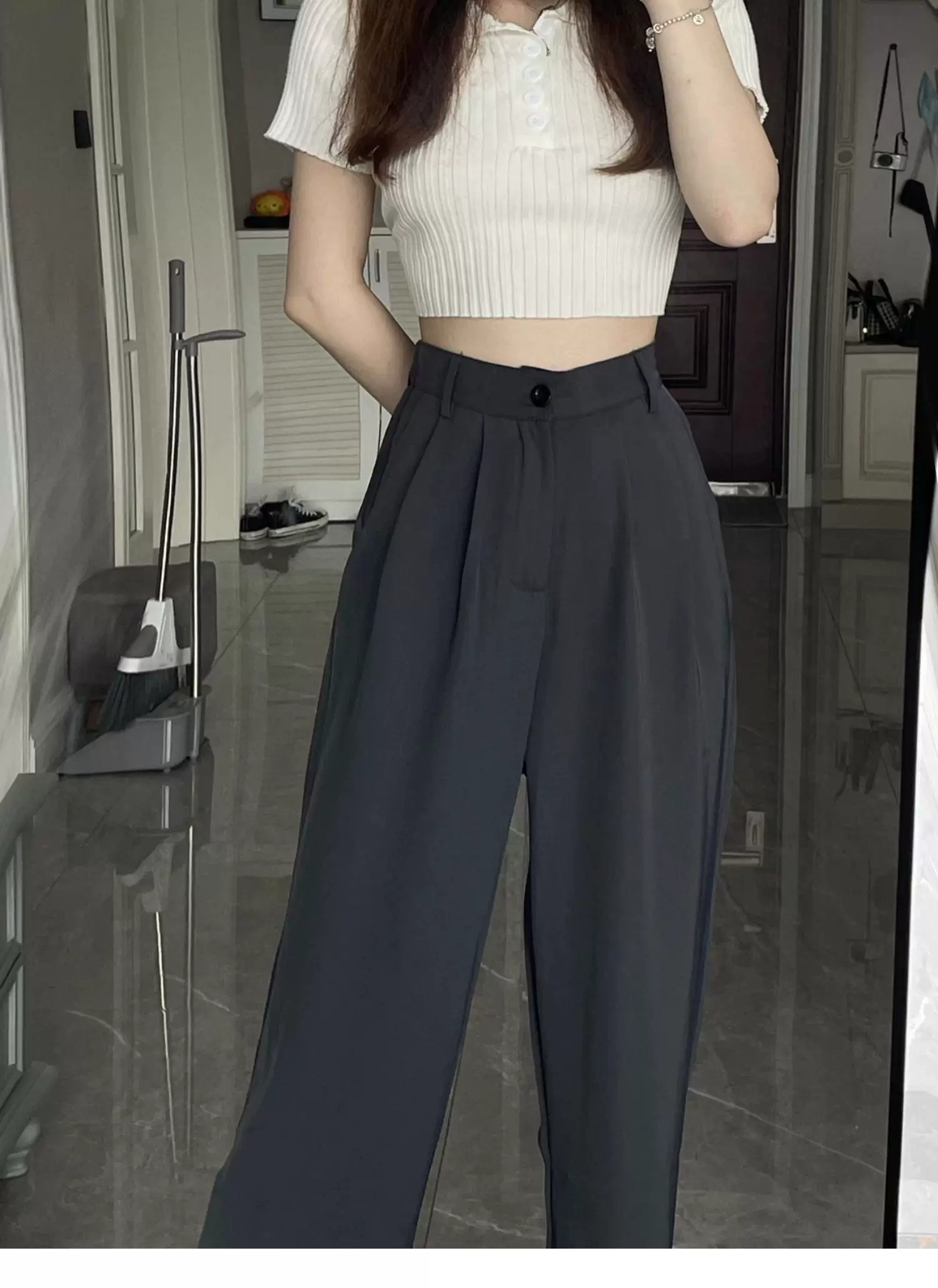 - Quần ống rộng dáng quả lê dành cho nữ, phong cách đầu thu, dáng hơi mũm mĩm, cảm giác cao cấp, mềm mại, lưng cao, quần kiểu dáng thon gọn