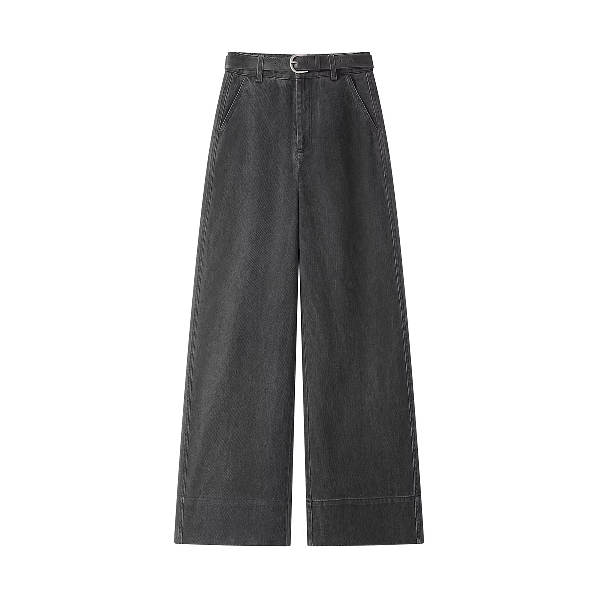 Quần ống rộng dáng rộng kiểu dáng cổ điển NSROU dành cho nữ mùa xuân hè quần denim màu xám thông thường đa năng