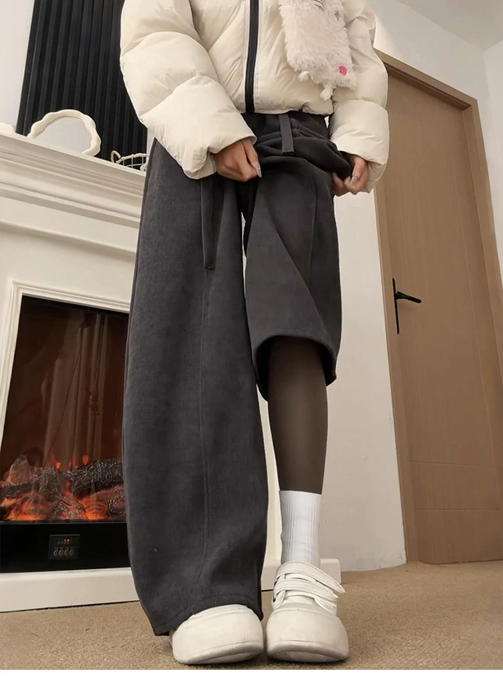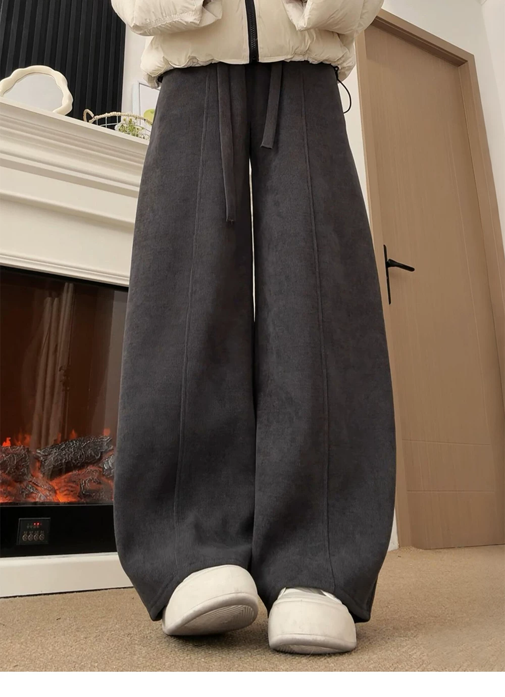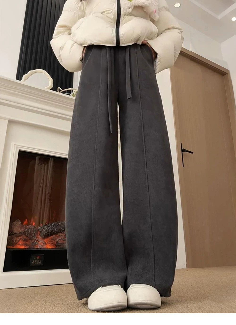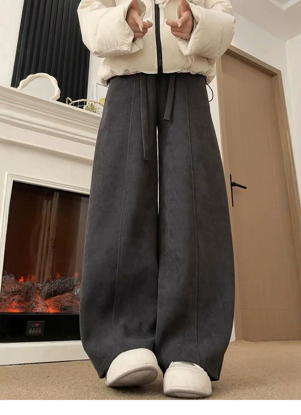 - Quần ống rộng dáng suông cho nữ, mùa thu đông, cỡ lớn, lưng cao, dáng suôn, tôn dáng, lót lông cừu, dày dặn, dáng quả lê, quần ống rộng