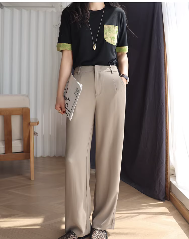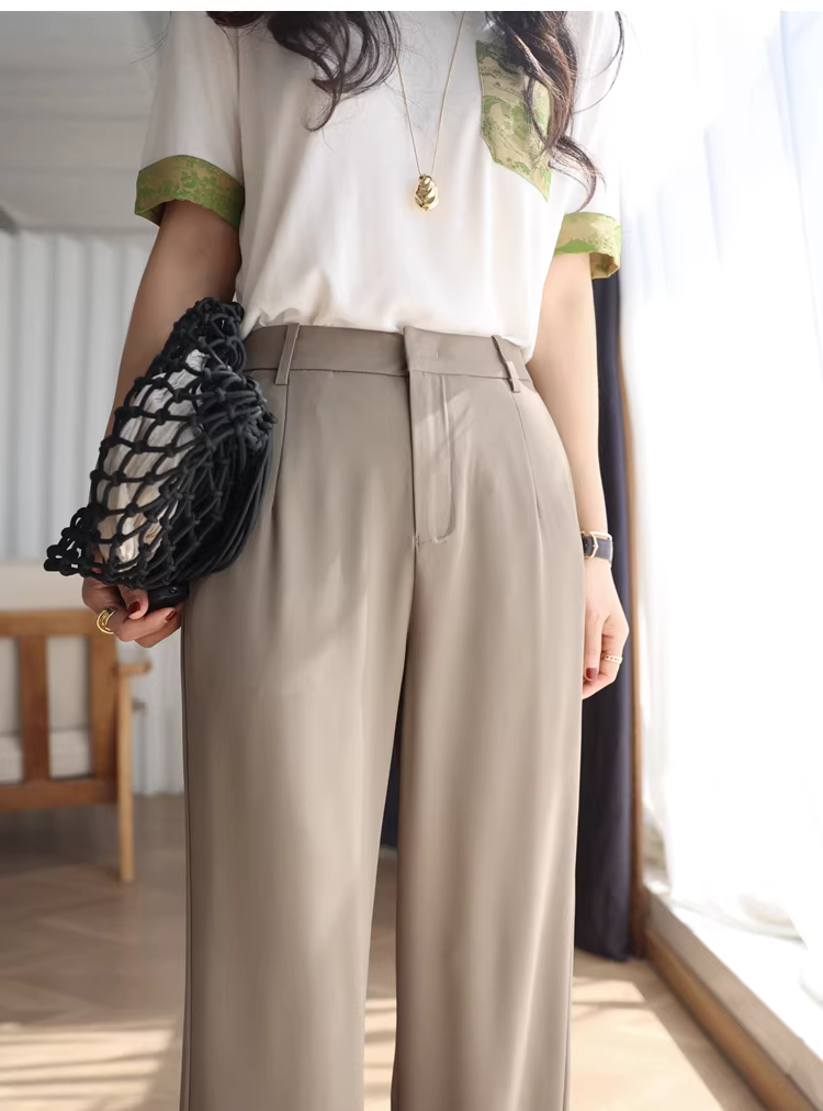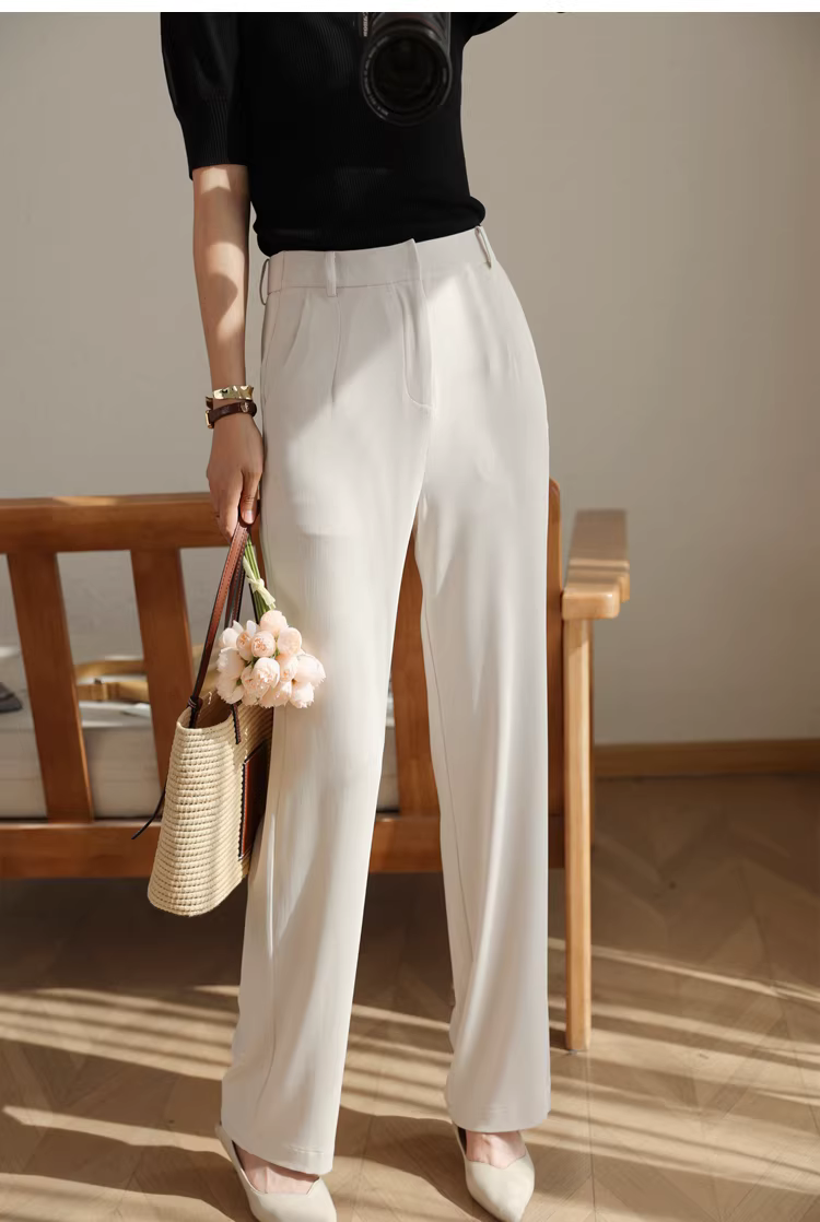 Quần ống rộng, dáng thẳng, cạp cao, không cần là, không nhăn, mát mẻ và mỏng nhẹ, quần công sở dành cho nữ, mới cho mùa hè.