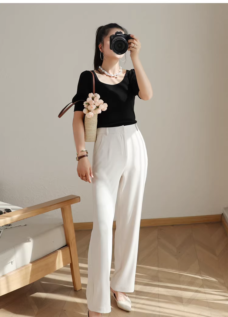 - Quần ống rộng, dáng thẳng, cạp cao, không cần là, không nhăn, mát mẻ và mỏng nhẹ, quần công sở dành cho nữ, mới cho mùa hè.