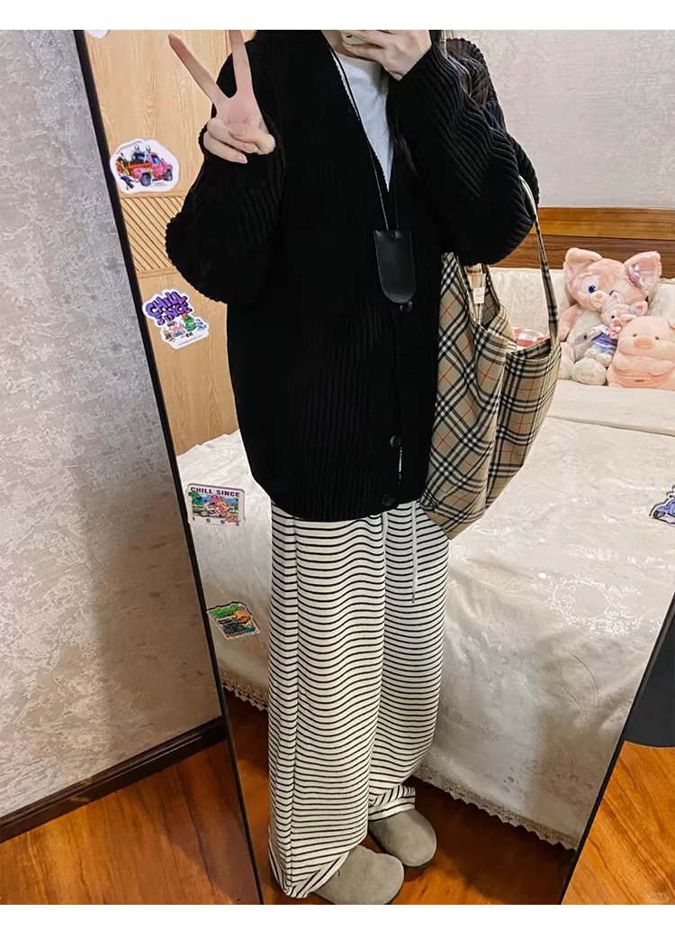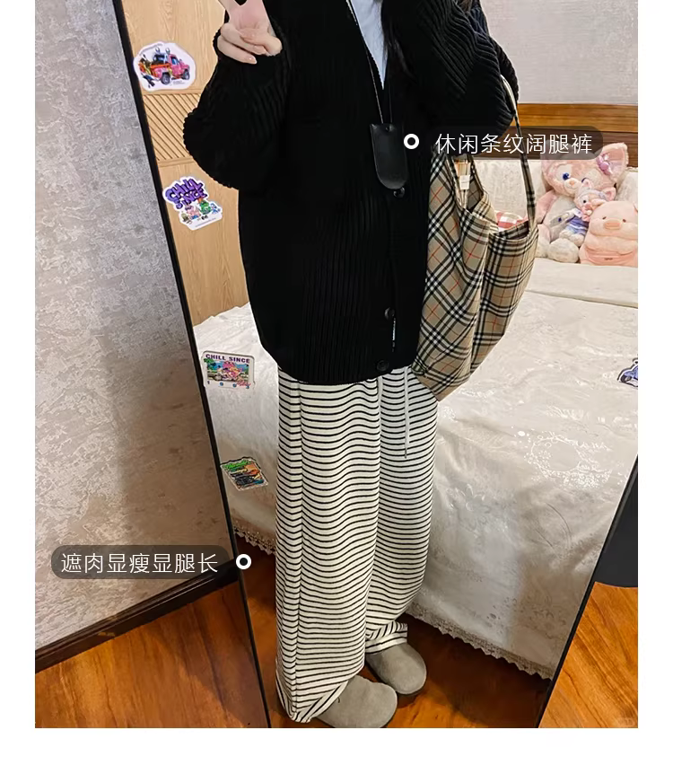 - Quần ống rộng kẻ sọc trắng La Chapelle dành cho nữ, mẫu mới thu đông 2025, dáng rộng, thoải mái, thẳng, phù hợp với người nhỏ nhắn