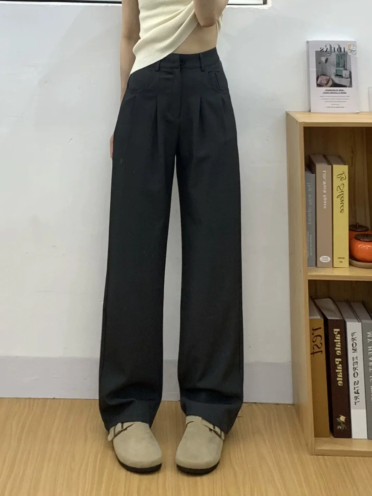 - Quần ống rộng kiểu vest cao cấp màu xám dành cho nữ, kiểu dáng mùa hè mới, cỡ lớn, lưng cao, tôn dáng, quần ống đứng suôn mềm, mặc thường ngày.