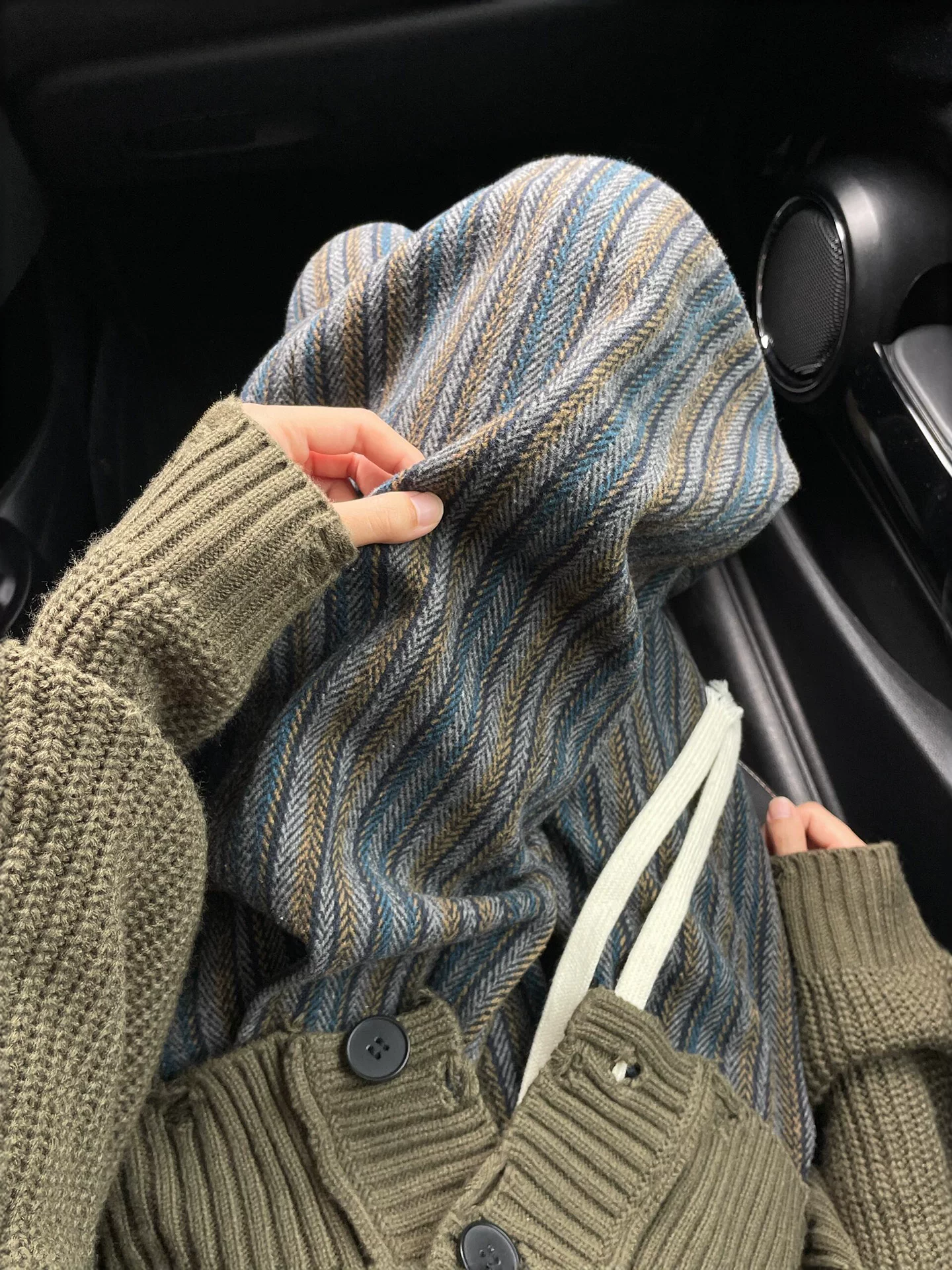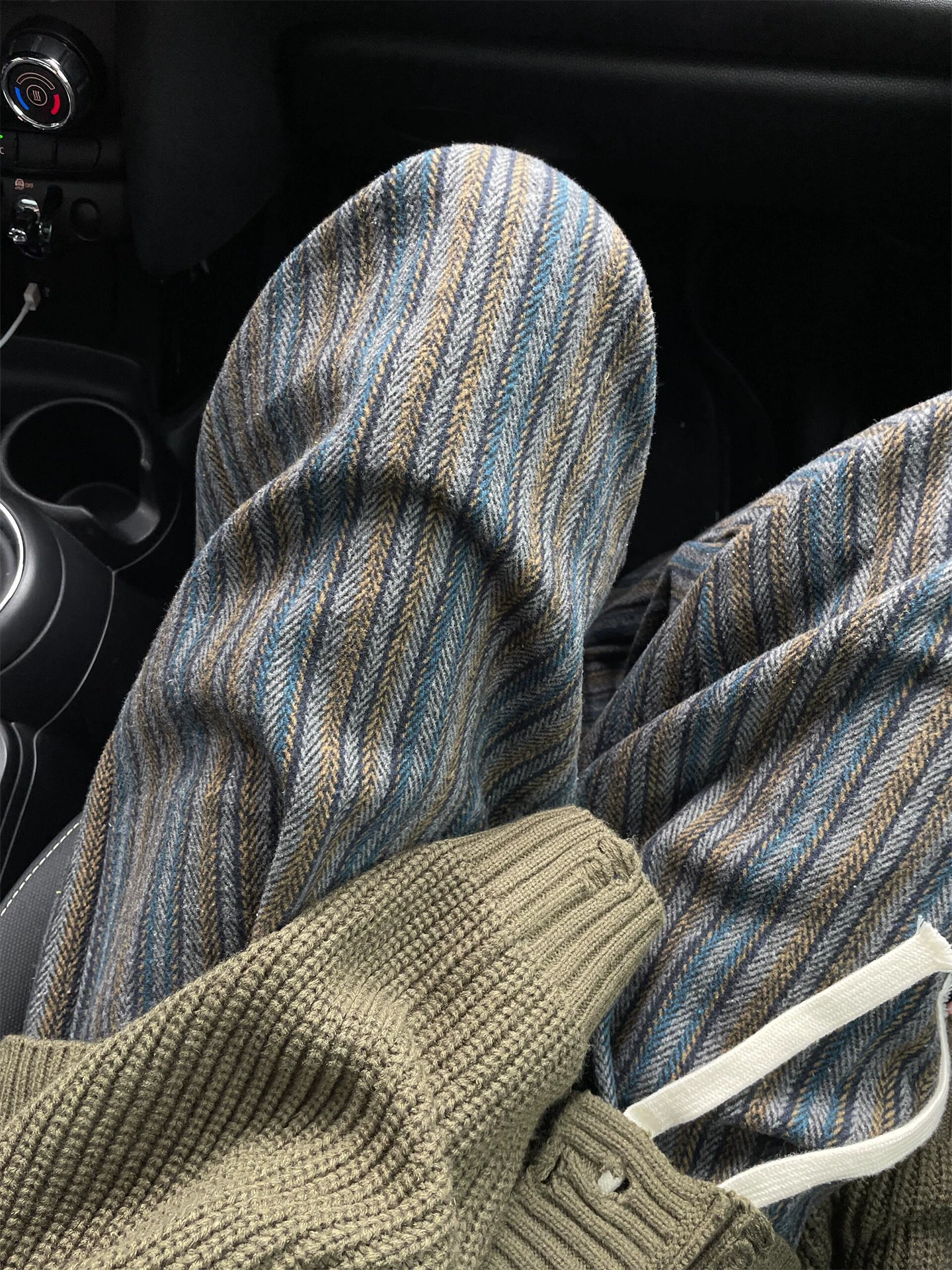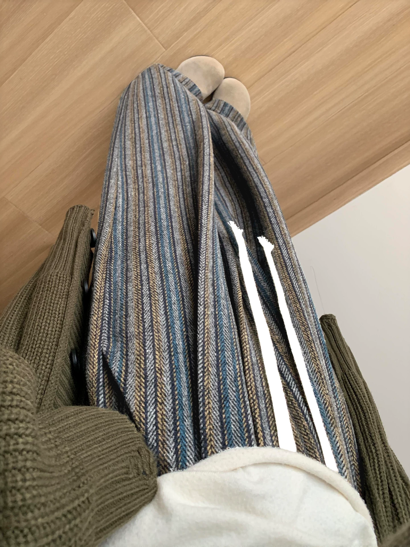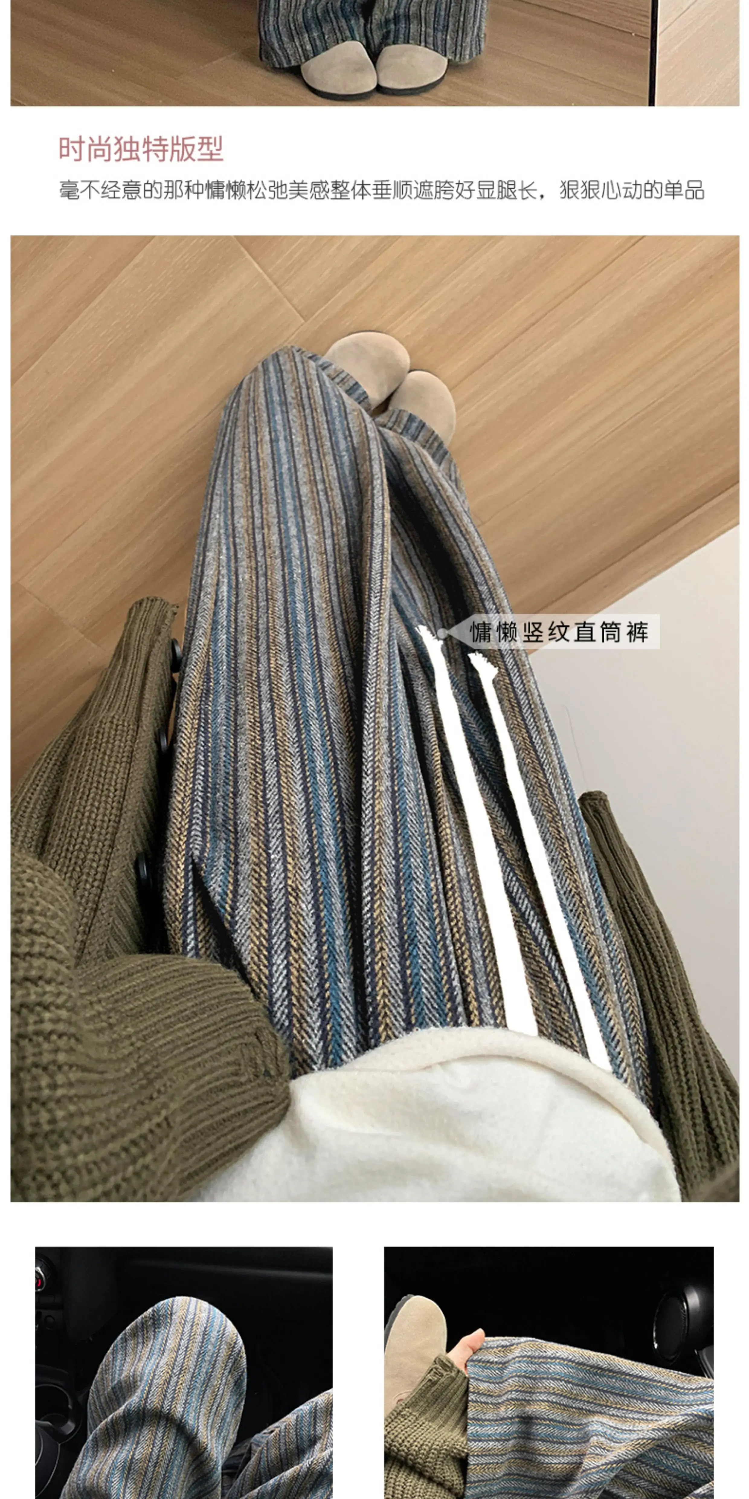 Quần ống rộng len phong cách lười biếng dành cho nữ, mùa thu đông, cỡ lớn, lưng cao, dáng rộng, thon gọn, dáng quả lê, quần sọc thường ngày