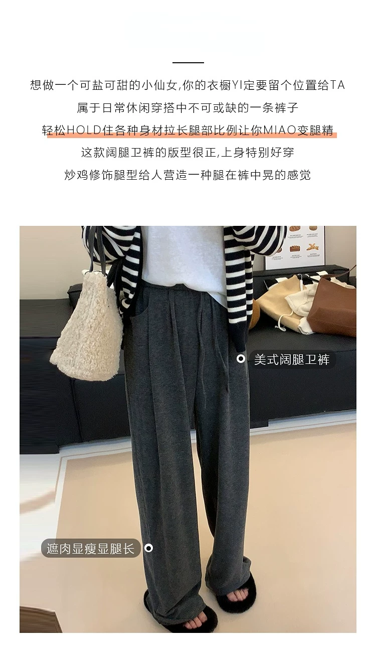 Quần ống rộng lưng cao dáng rộng cỡ lớn mùa thu dành cho nữ với hiệu ứng xếp nếp thon gọn và thoải mái, phù hợp với mọi dịp.