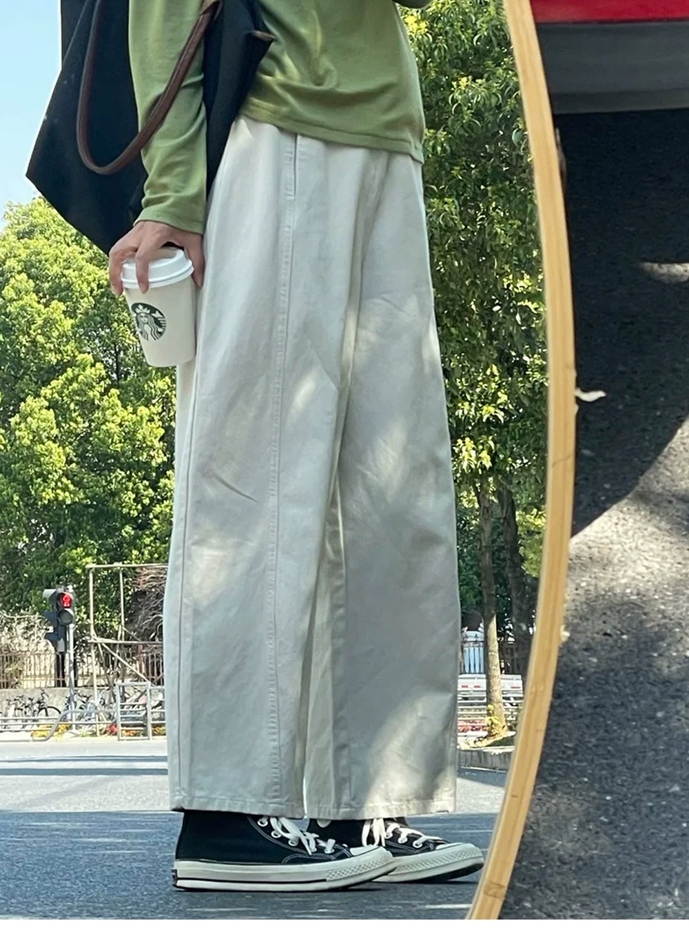 - Quần ống rộng lưng cao kiểu Nhật dành cho nữ, cỡ lớn, quần chín phần dành cho người có thân hình quả lê, che hông, giảm béo, quần cargo ống thẳng