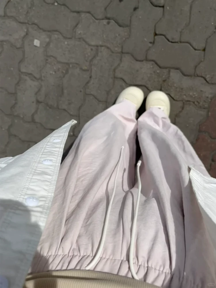- Quần ống rộng màu hồng giản dị dành cho nữ, cỡ lớn mùa hè, lưng cao, thon gọn, phong cách lười biếng, quần Yamamoto như mây.