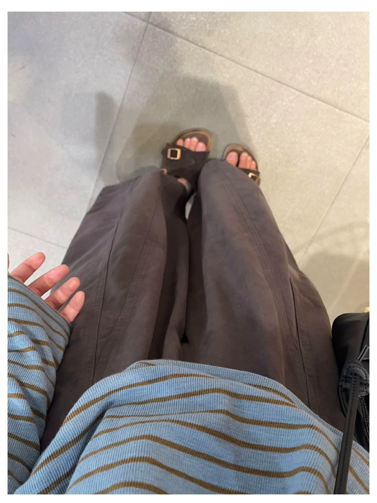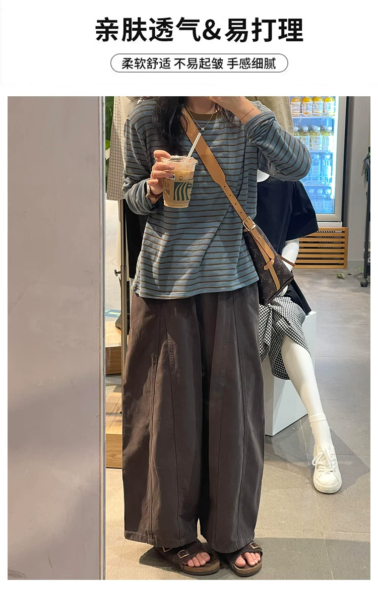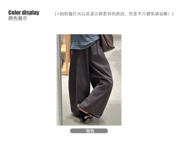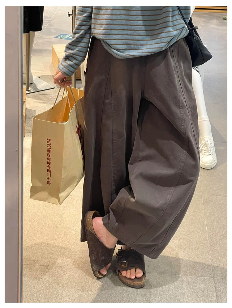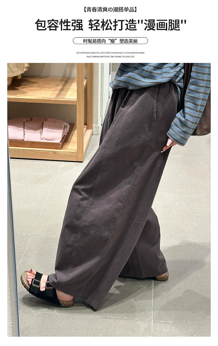 - Quần ống rộng màu nâu thường ngày dành cho nữ, mùa thu, cỡ lớn, lưng cao, che hông, giảm béo, dáng quả lê, quần ống rộng ngắn