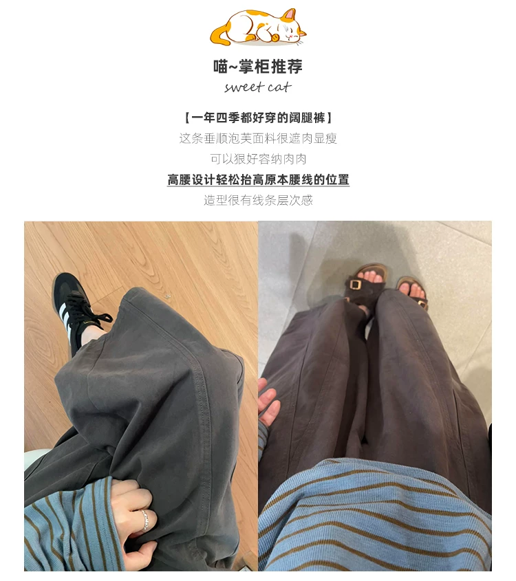 Quần ống rộng màu nâu thường ngày dành cho nữ, mùa thu, cỡ lớn, lưng cao, che hông, giảm béo, dáng quả lê, quần ống rộng ngắn