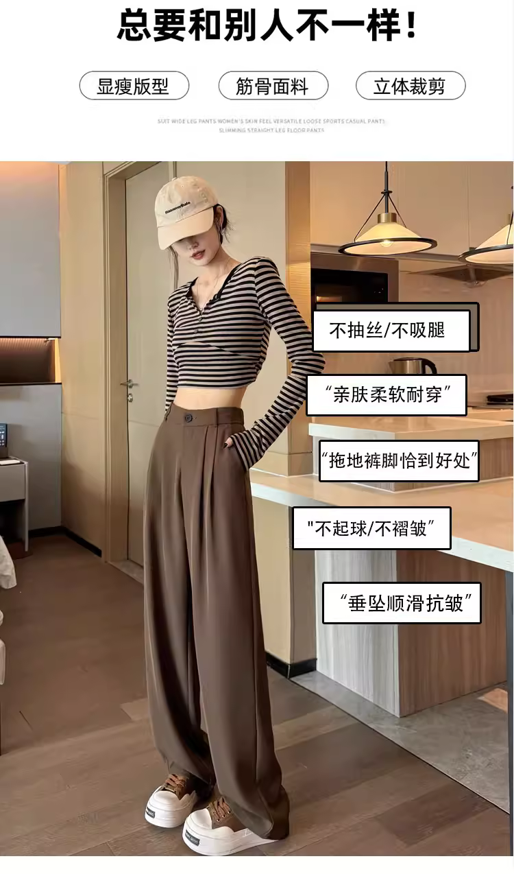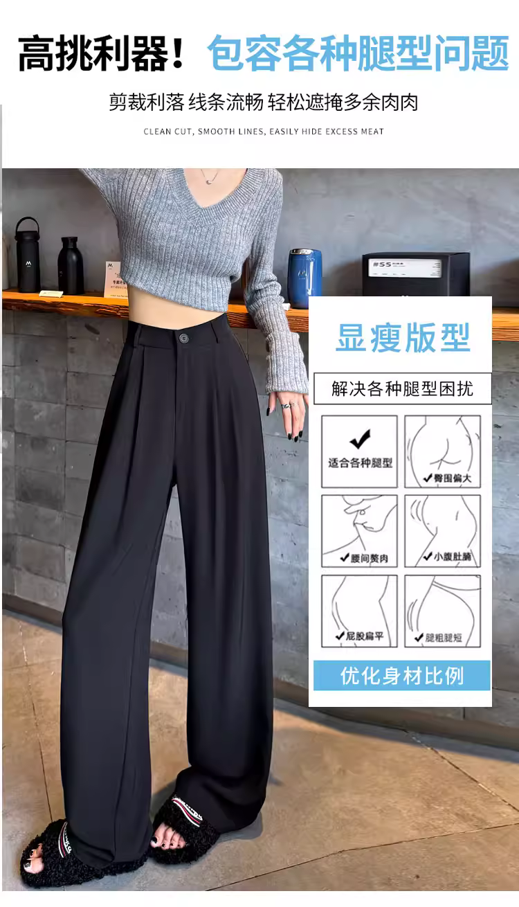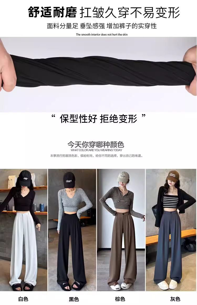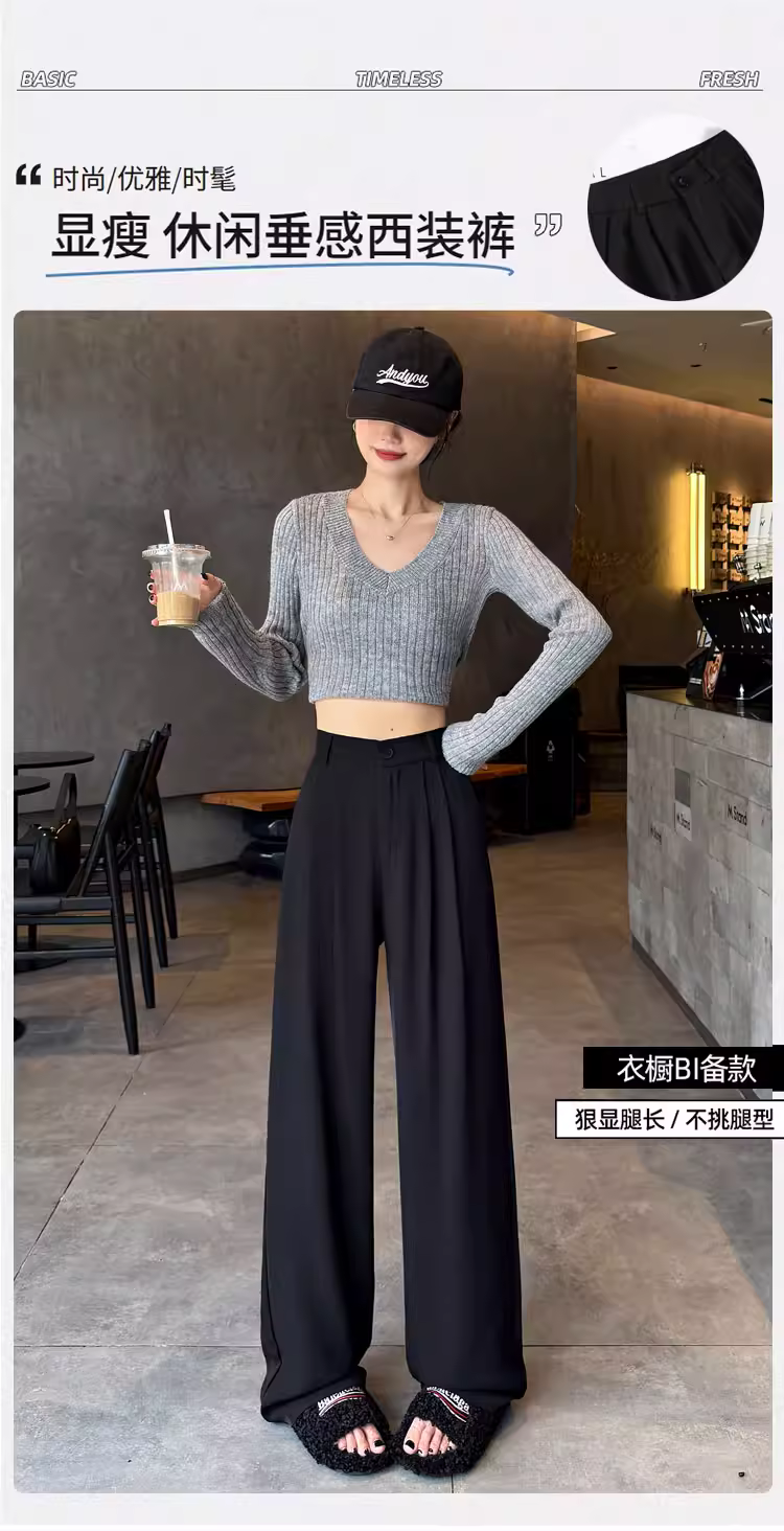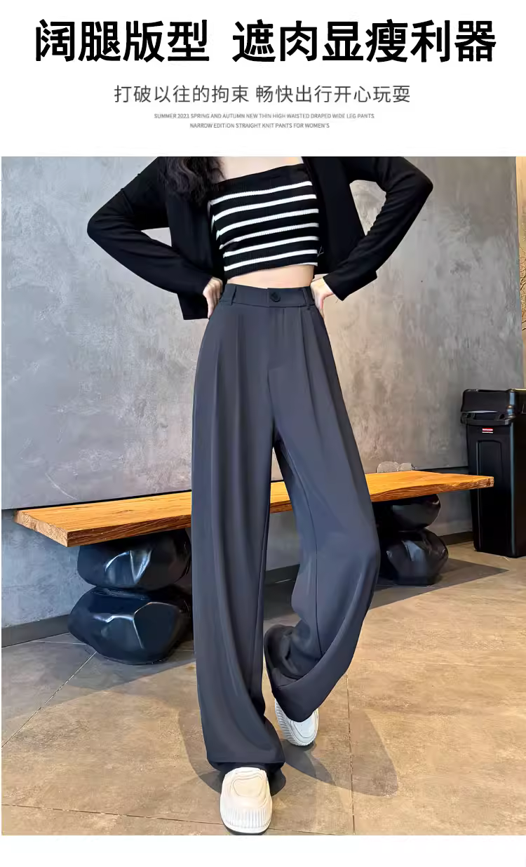 - Quần ống rộng màu trắng dành cho phụ nữ cao, mùa xuân thu, cực dài, quần vest nữ thời trang đầu thu.