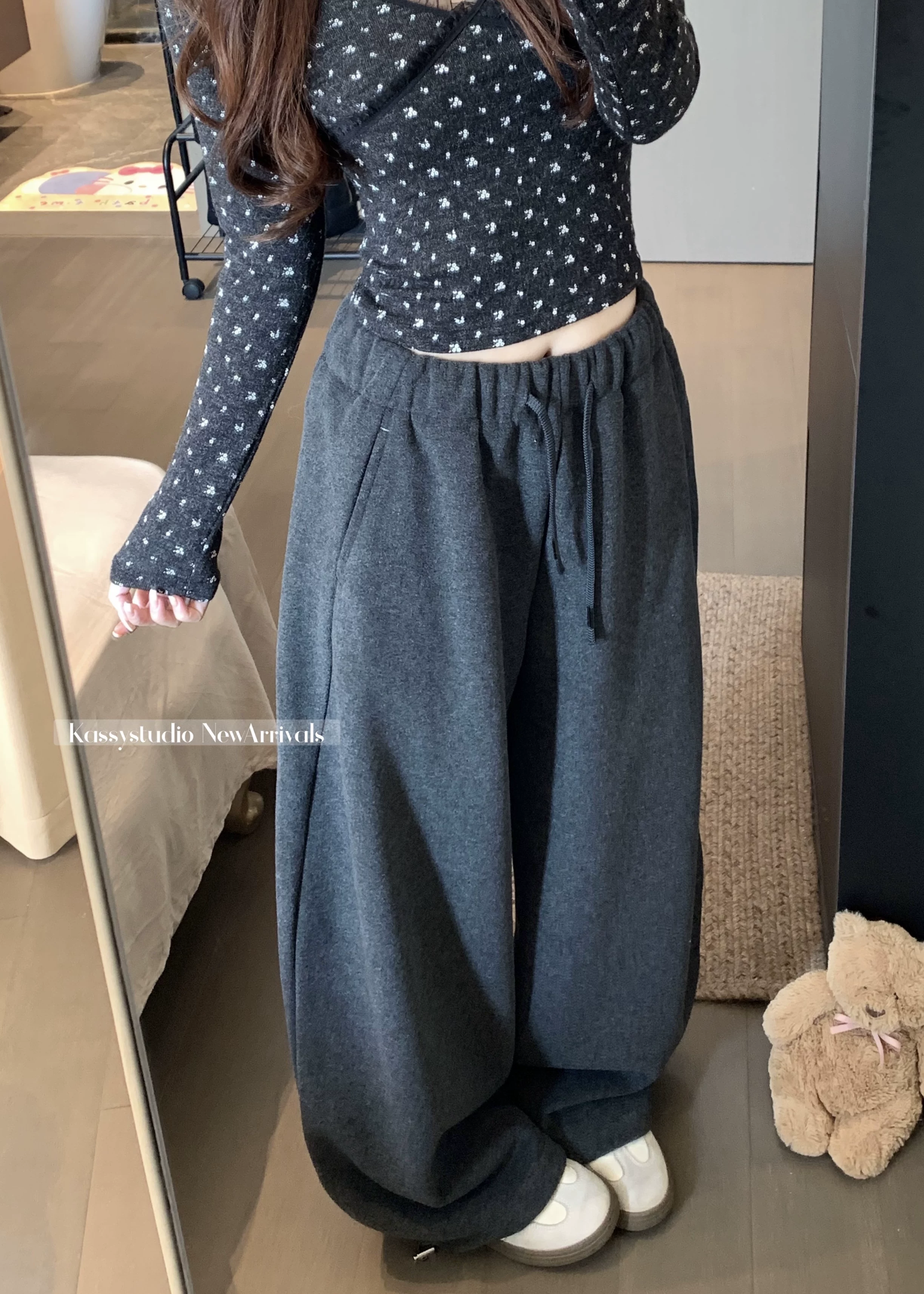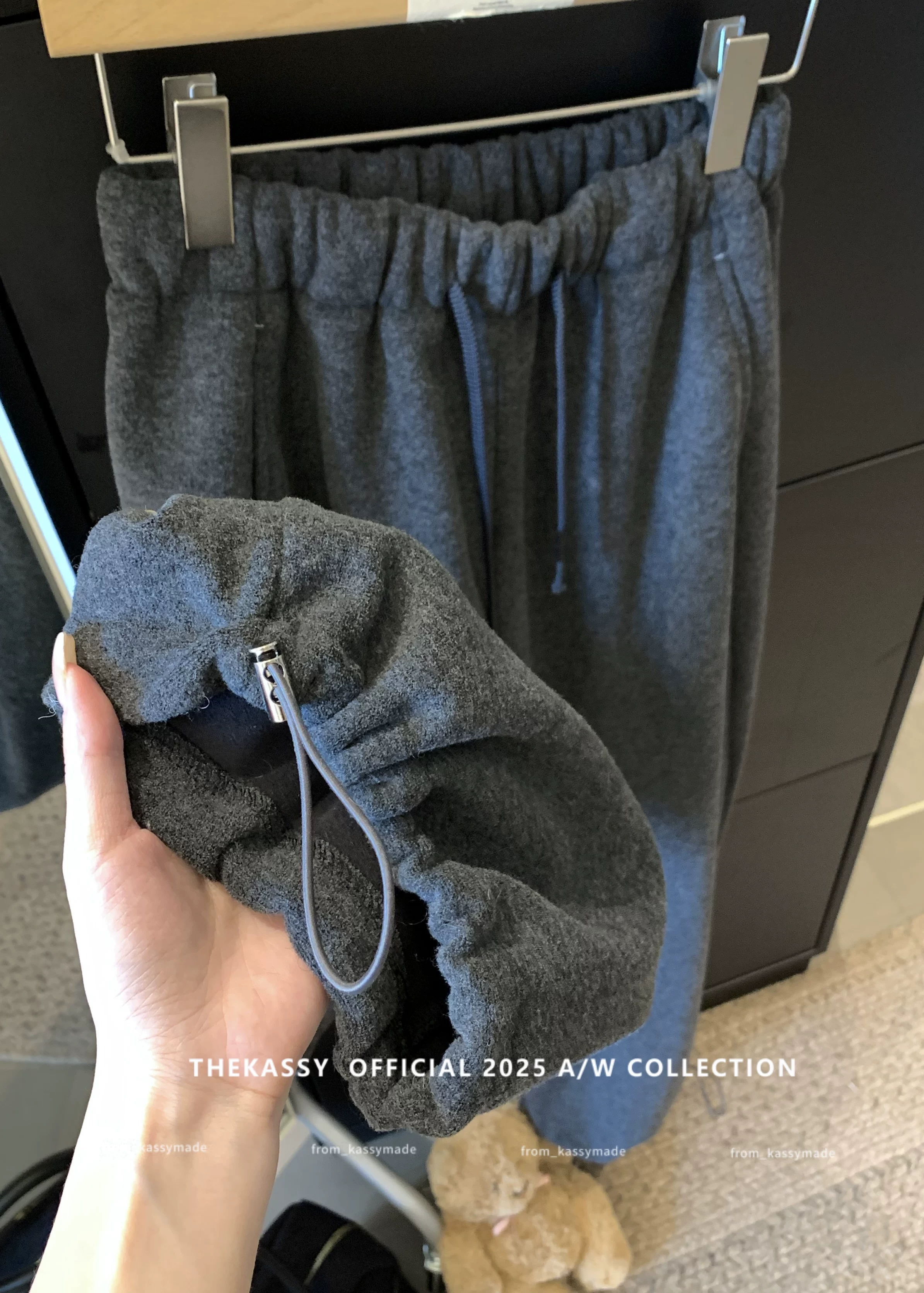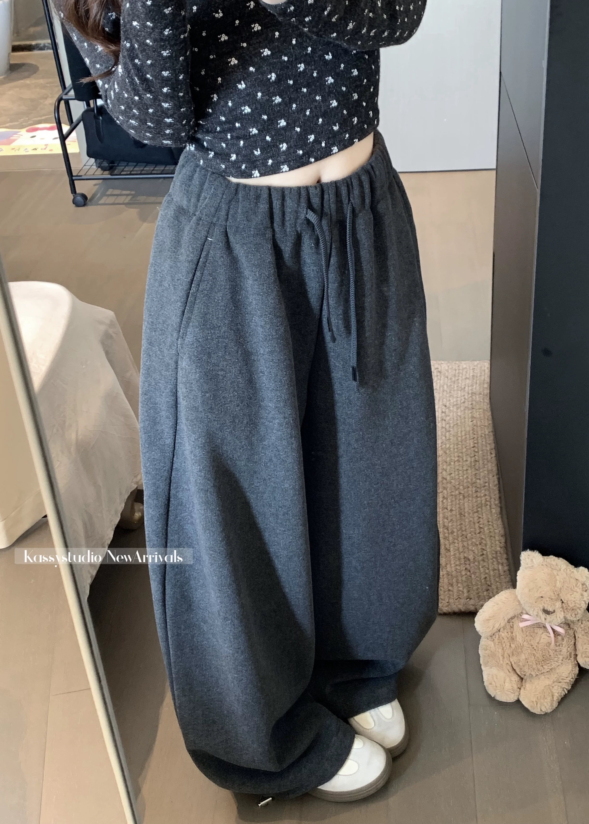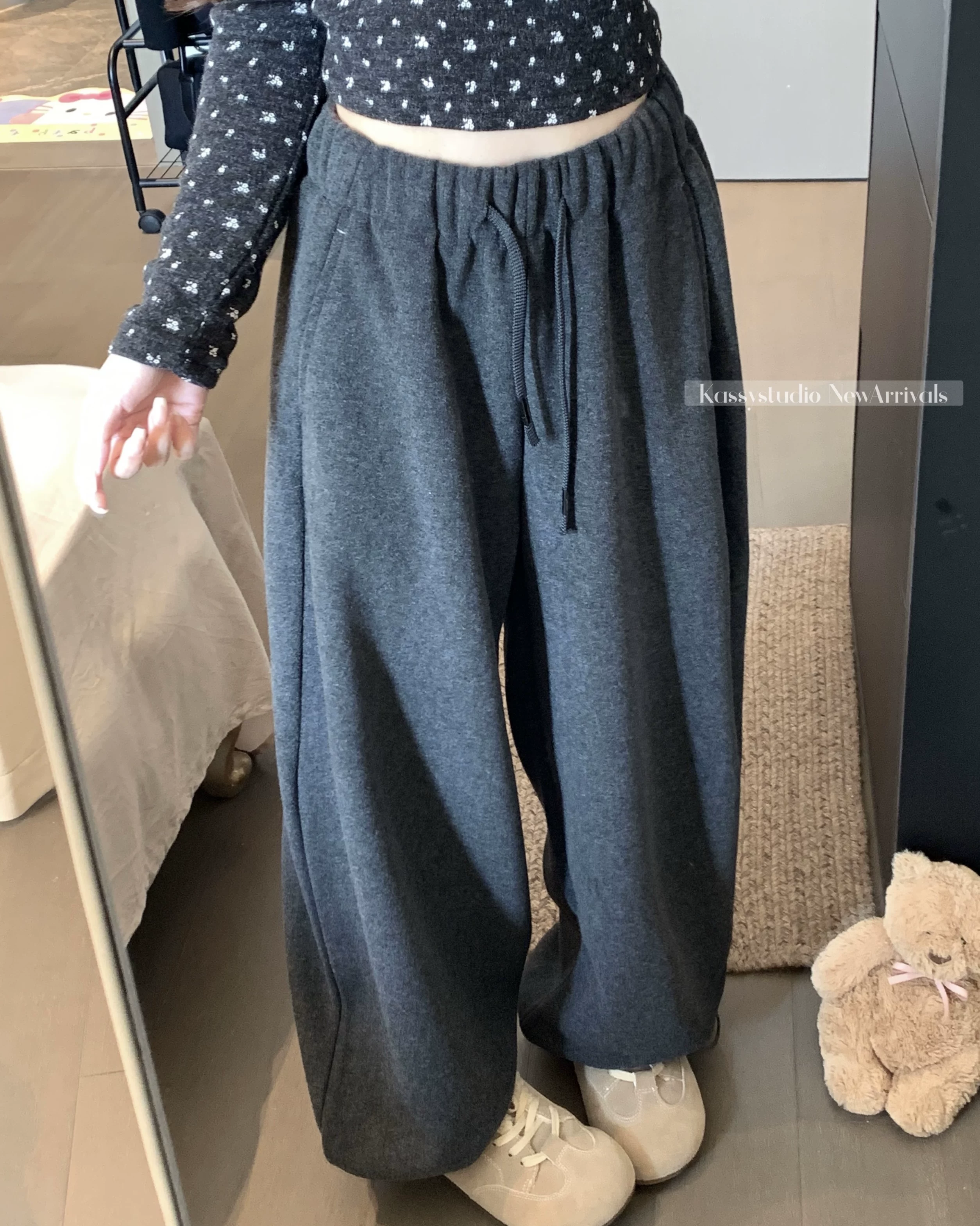 Quần ống rộng màu trắng nhạt dành cho nữ, lót lông cừu mùa đông, cỡ lớn, lưng cao, mềm mại, tôn dáng, dáng quả lê, quần ống rộng