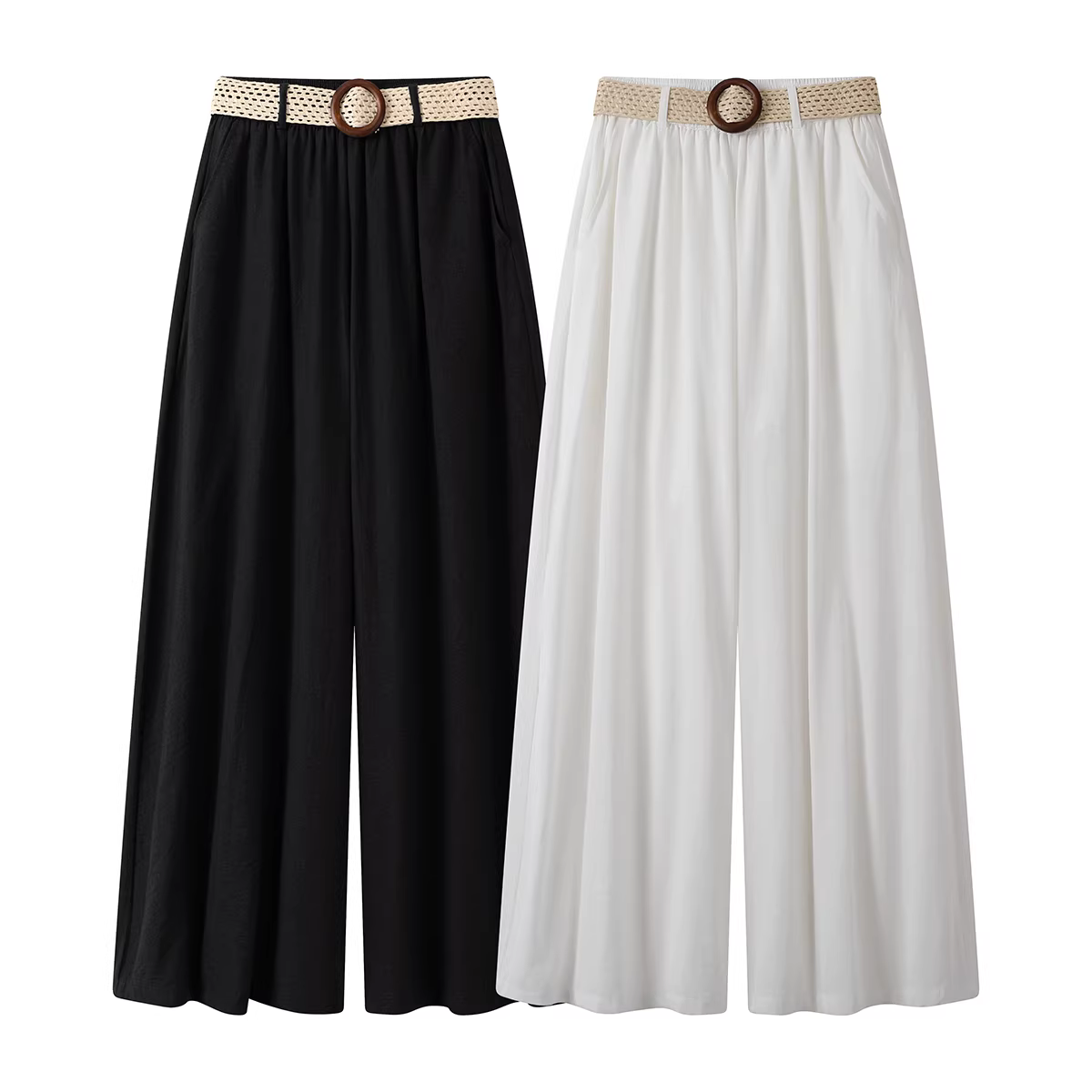 - Quần ống rộng thẳng lưng cao màu trơn thời trang phong cách Hàn Quốc dành cho nữ, quần culottes trắng rộng rãi đa năng mùa hè mới