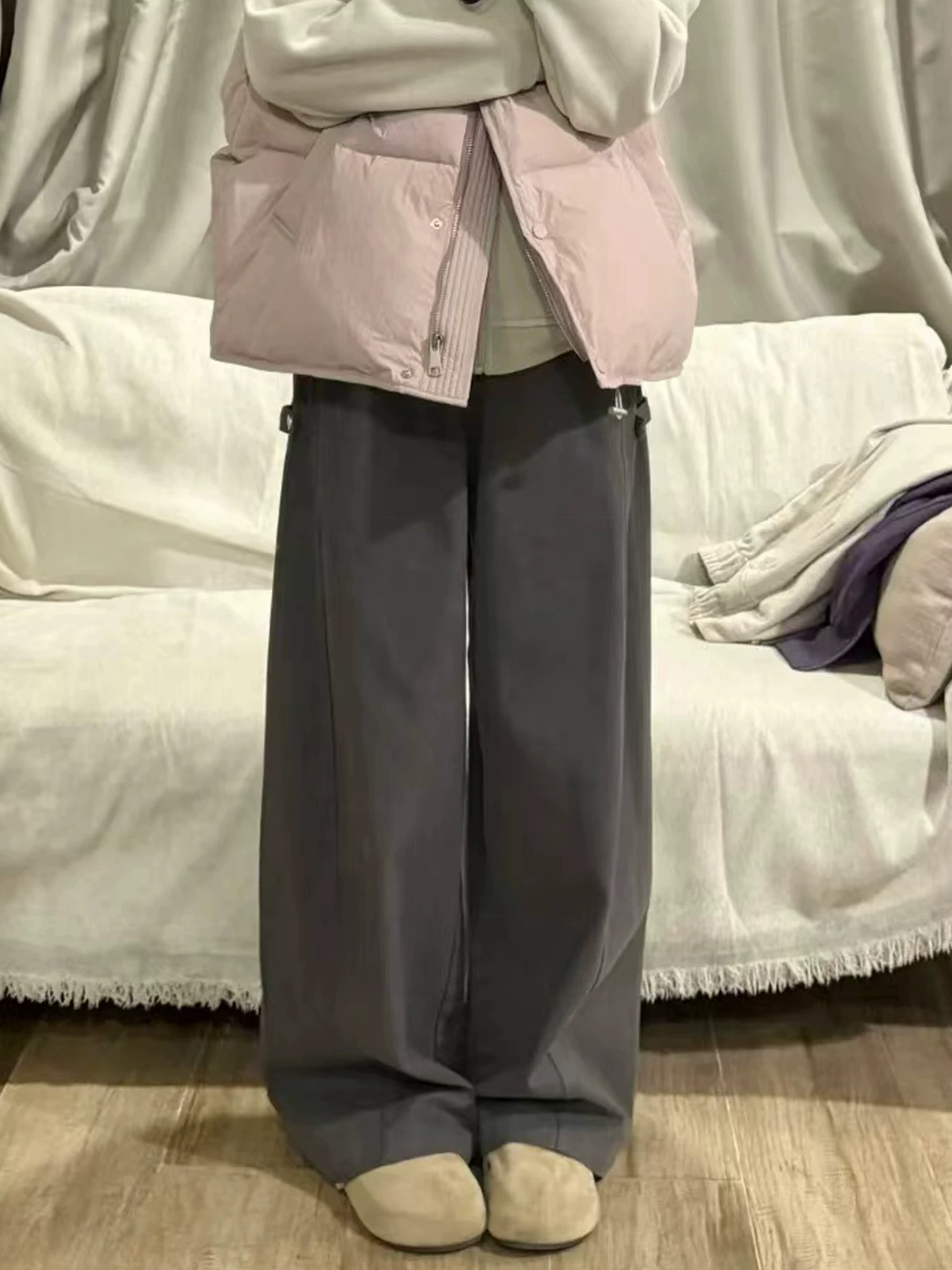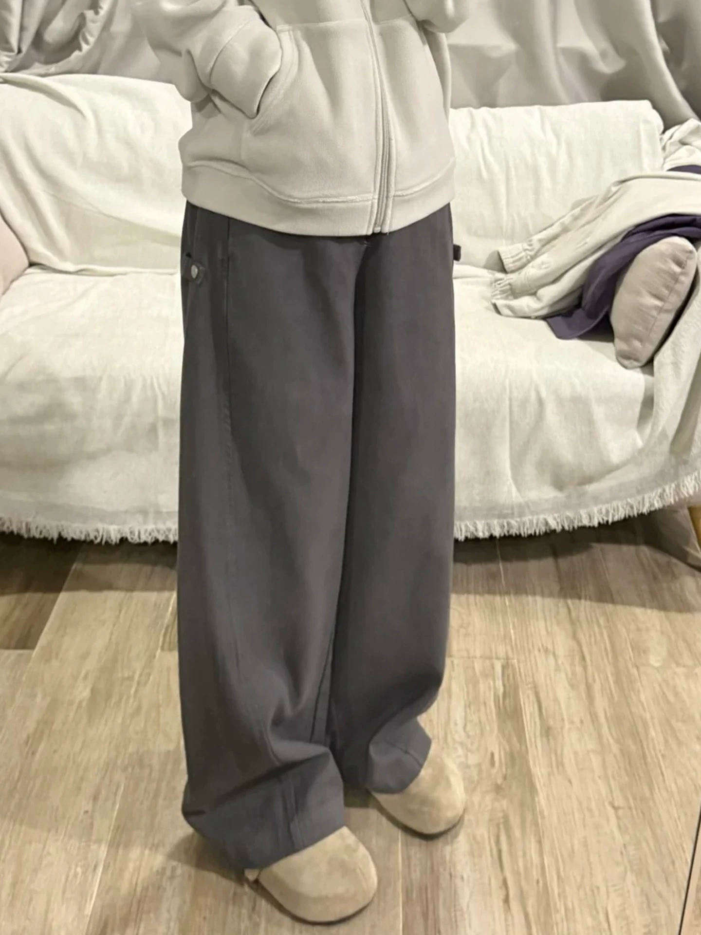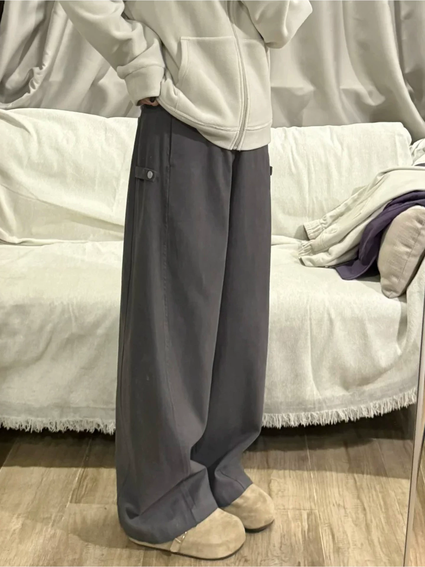 Quần ống rộng thường ngày lót lông màu xám dành cho nữ, cỡ lớn mùa đông, lưng cao, dáng rộng, thon gọn, dáng quả lê, quần cargo hình lưỡi kiếm