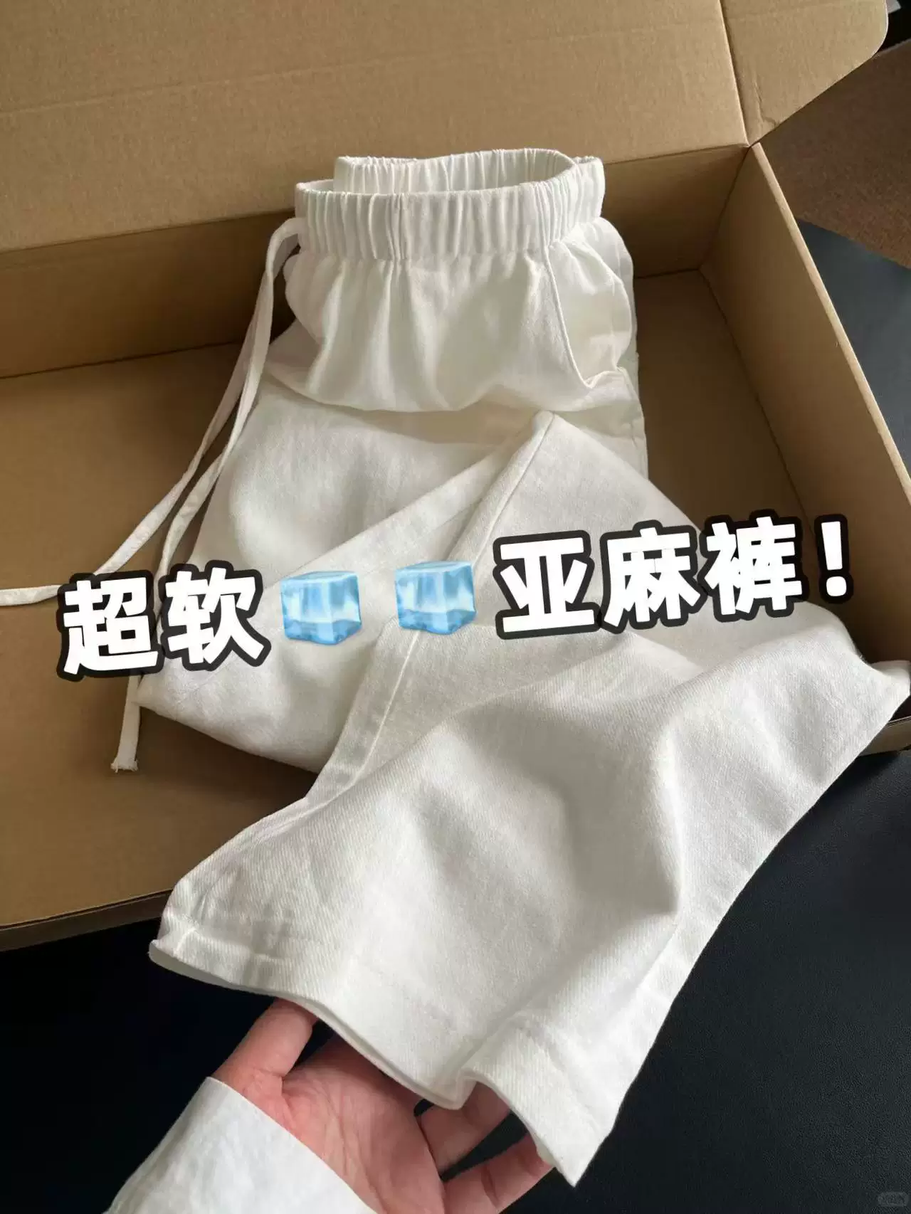- Quần ống rộng vải lanh trắng dành cho nữ, kiểu dáng mỏng mùa hè, cỡ lớn, cạp cao, che hông, giảm béo, quần ống đứng bằng vải lụa băng, kiểu dáng đơn giản.