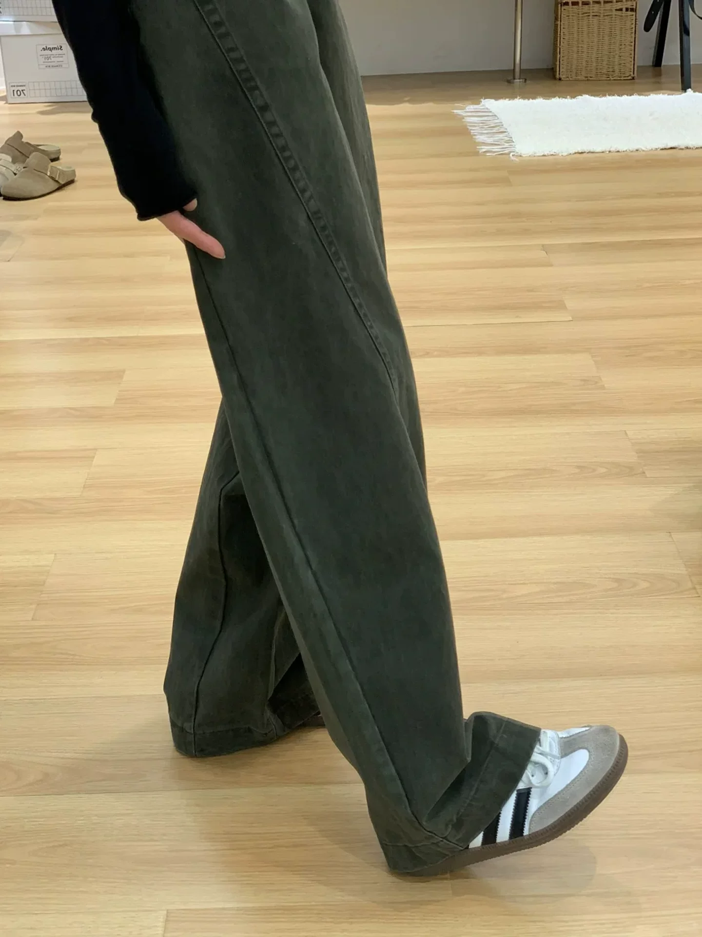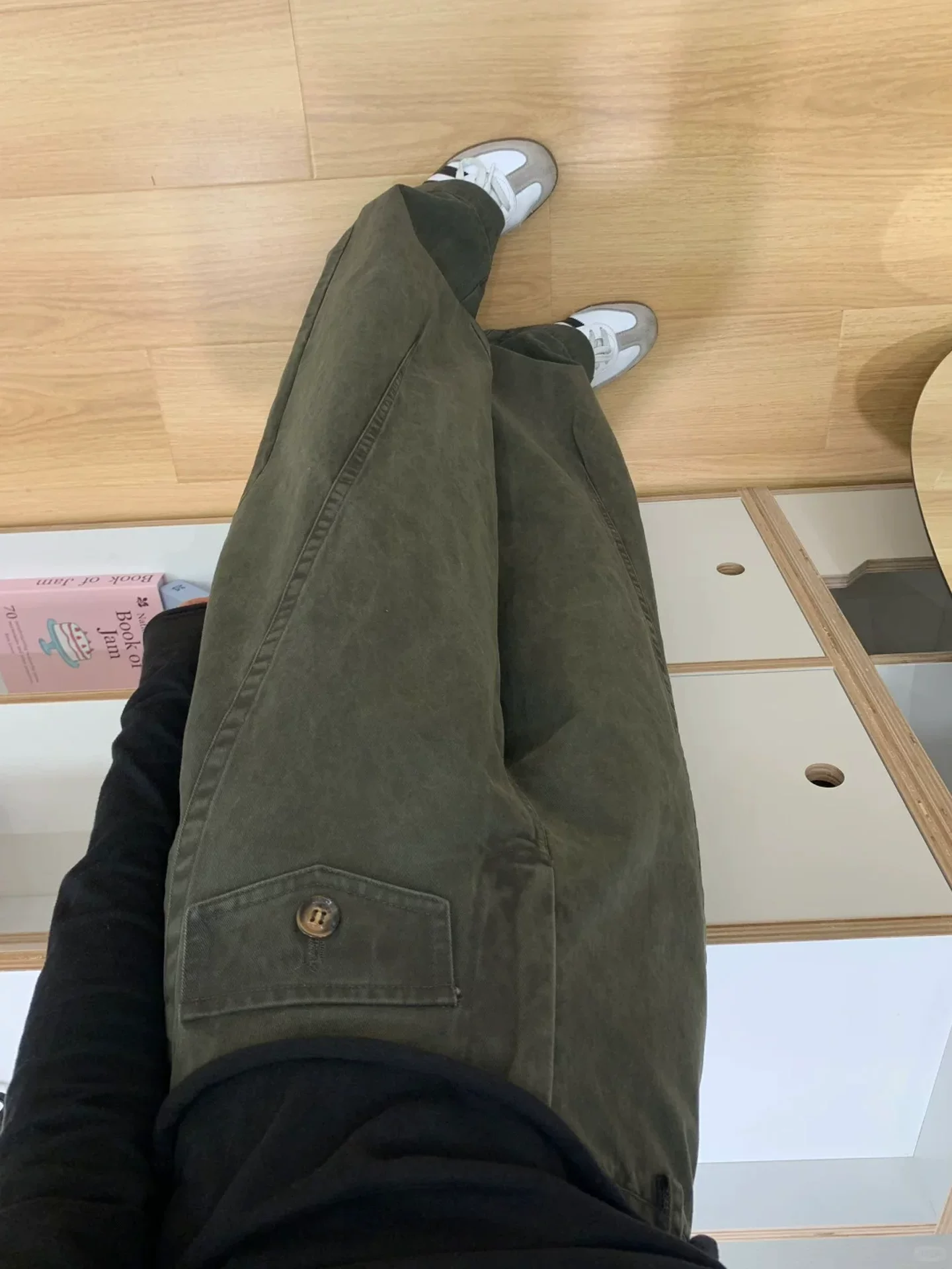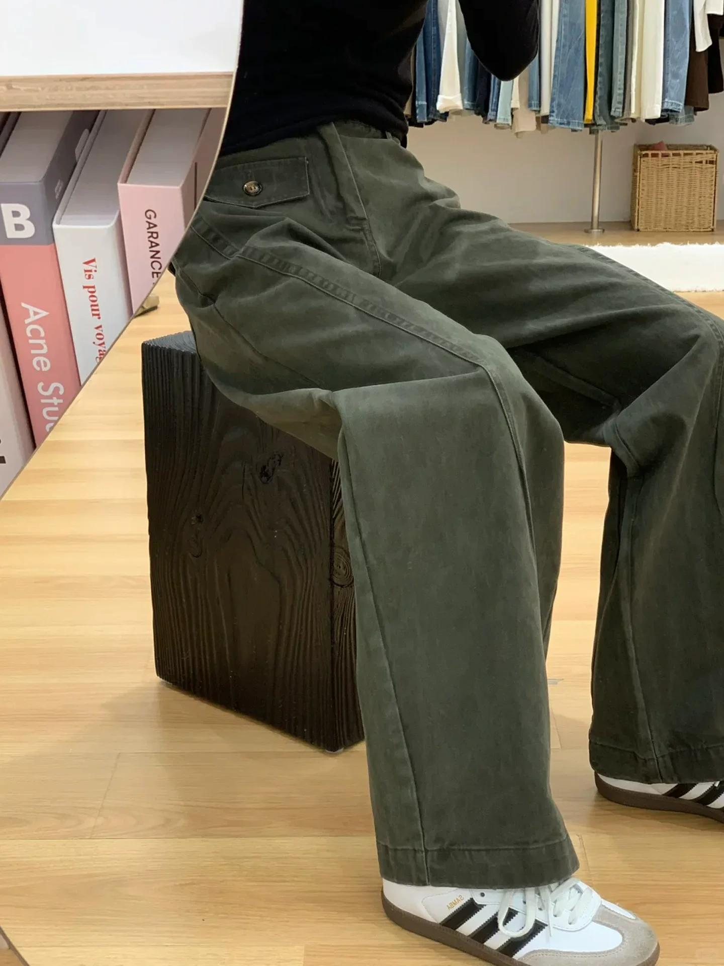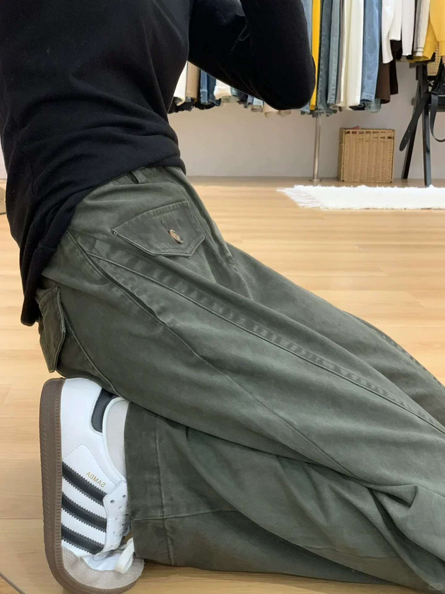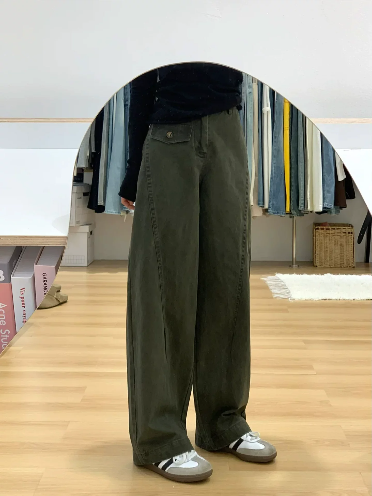 Quần scimitar cổ điển kiểu Mỹ dành cho nữ, quần cargo màu xanh quân đội, cỡ lớn mùa thu, quần cạp cao, dáng rộng, quần ống rộng giúp giảm béo.