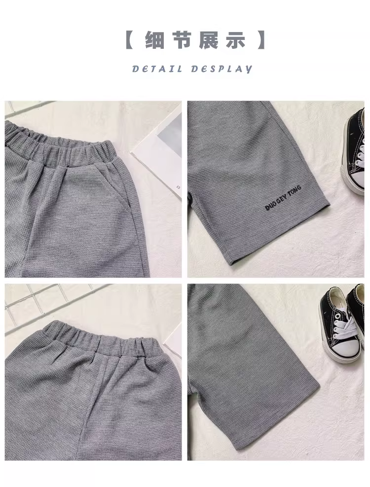 - Quần short bé trai mùa hè 2025 kiểu Hàn Quốc mới, thời trang trẻ em, chất liệu vải waffle dệt kim, dài đến đầu gối, mỏng nhẹ