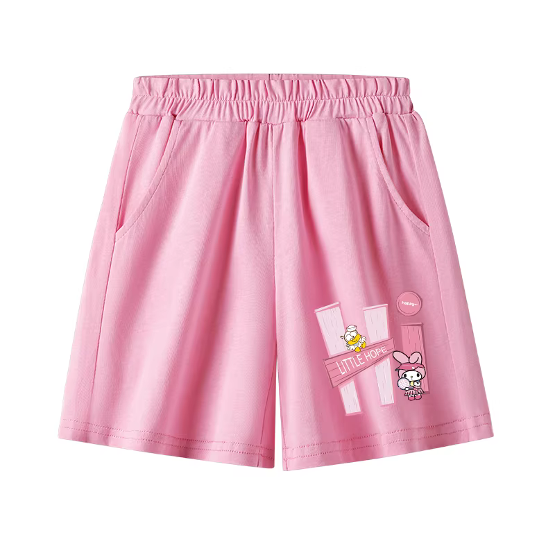 Quần short cotton nguyên chất dành cho bé gái hợp thời trang, kiểu dáng mỏng mùa hè, quần thời trang và đa năng, dáng rộng cho trẻ lớn.