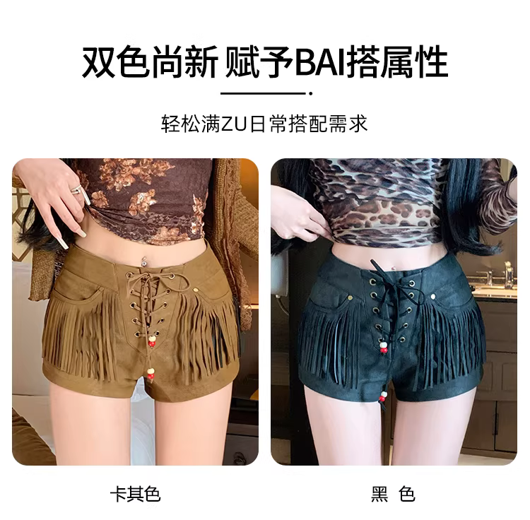 Quần short da lộn màu đen dành cho nữ, mùa thu đông, quần tua rua dày dặn dành cho nữ, quần short bốt Martin bó sát gợi cảm, quần short da.