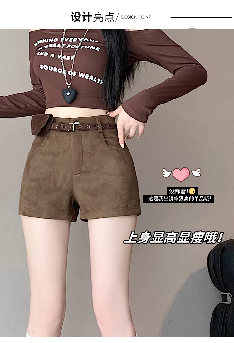 Quần short da lộn màu nâu dành cho nữ, thu đông 2025, kiểu mới cạp cao ôm sát, quần da bó sát tôn dáng hot girl, kiểu quần Martin.
