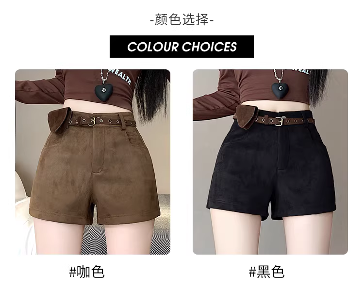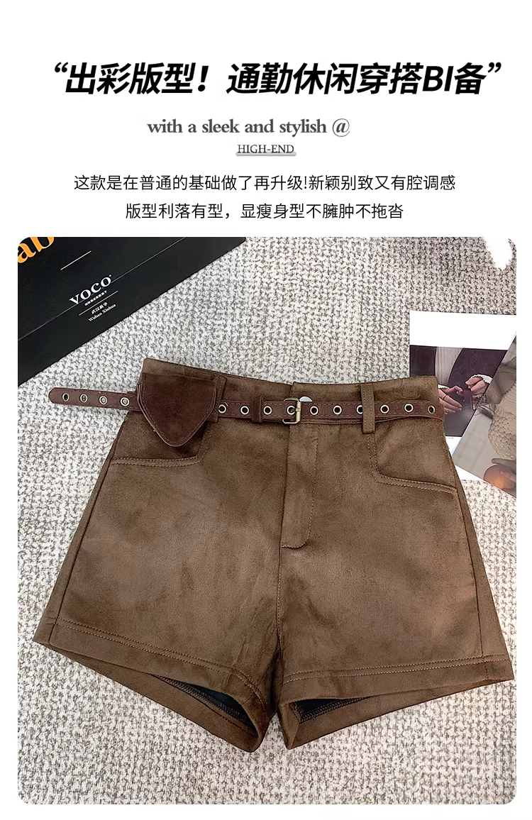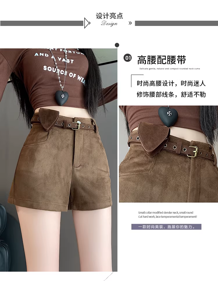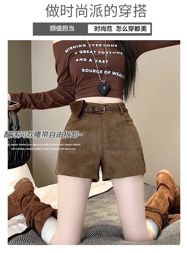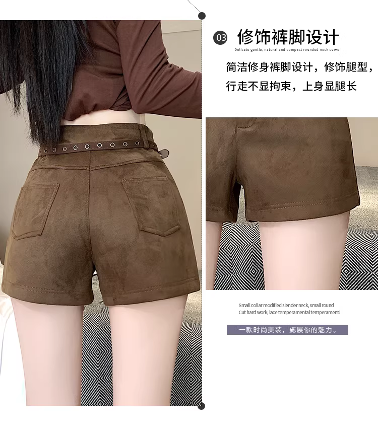 - Quần short da lộn màu nâu dành cho nữ, thu đông 2025, kiểu mới cạp cao ôm sát, quần da bó sát tôn dáng hot girl, kiểu quần Martin.