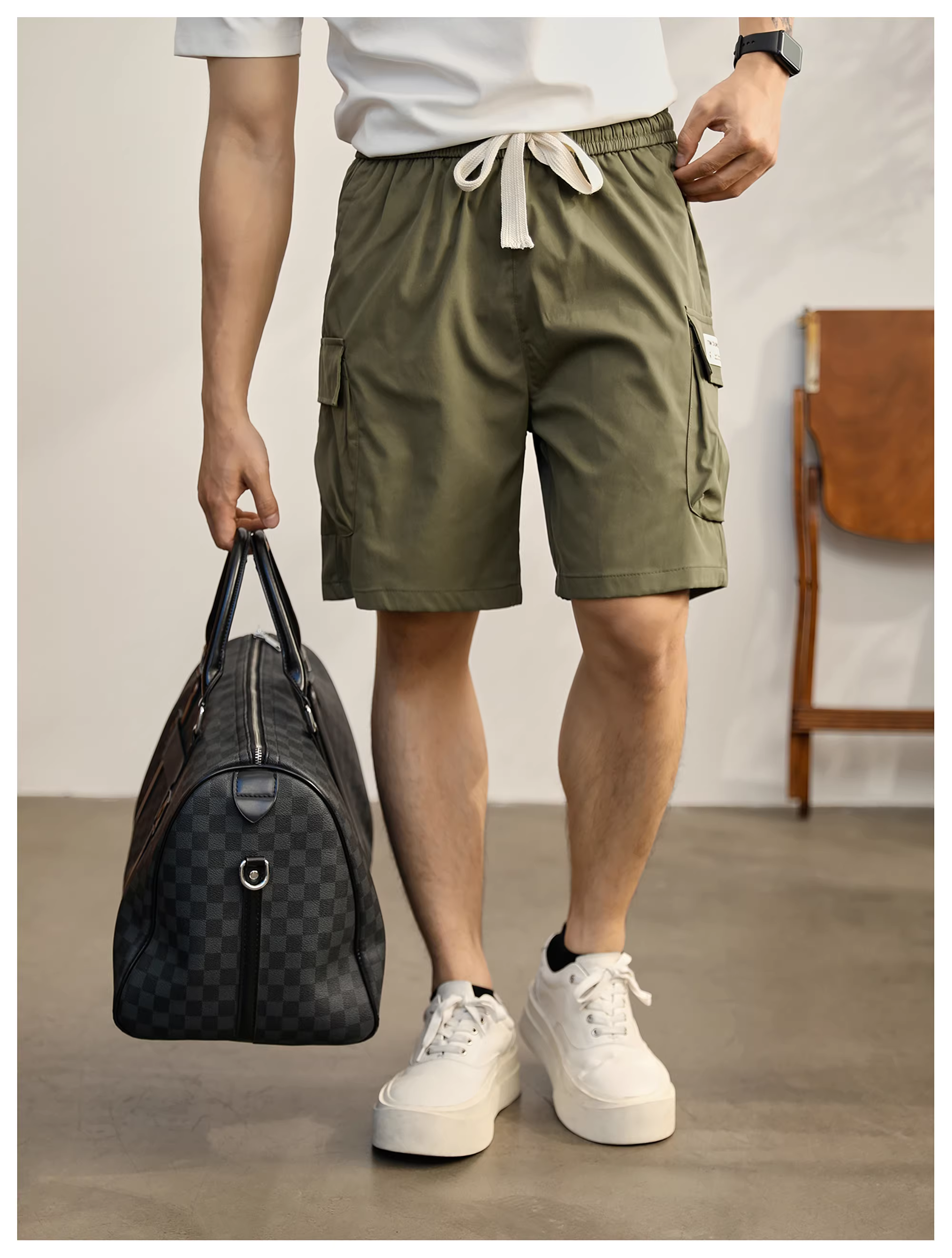 - Quần short đa năng hợp thời trang mùa hè dành cho nam LUUD có túi vá và thiết kế túi lớn, quần short lưng thun thông thường