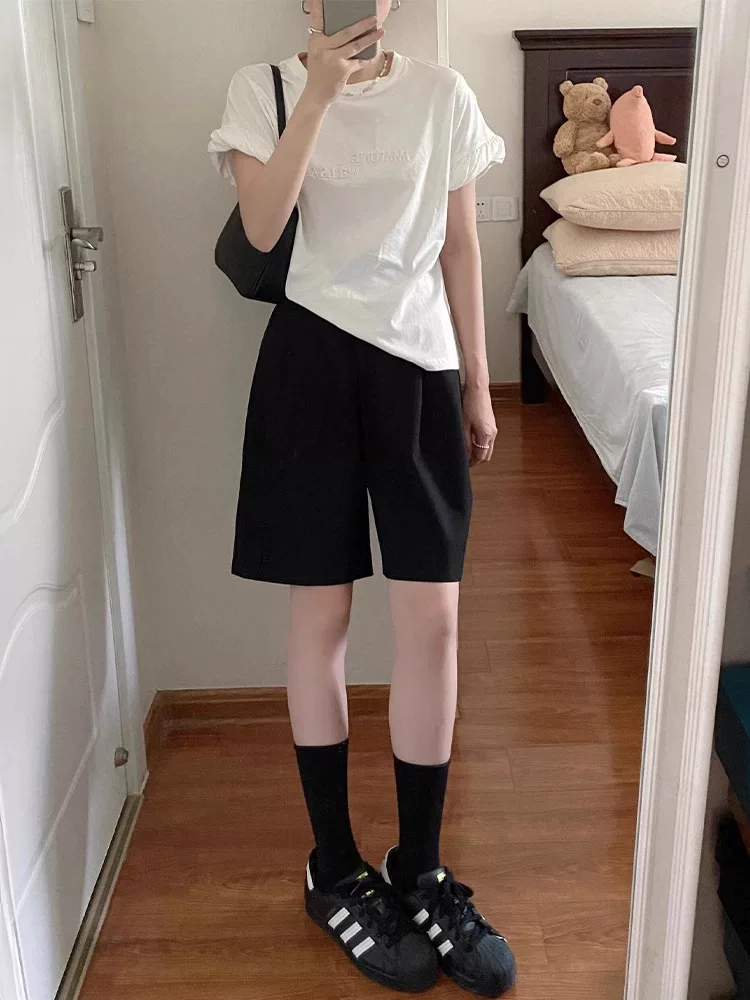 - Quần short dáng lê dành cho nữ, size lớn mùa hè, cạp cao, dáng rộng, tôn dáng, ống rộng, quần dài trung bình, kiểu dáng thường ngày.